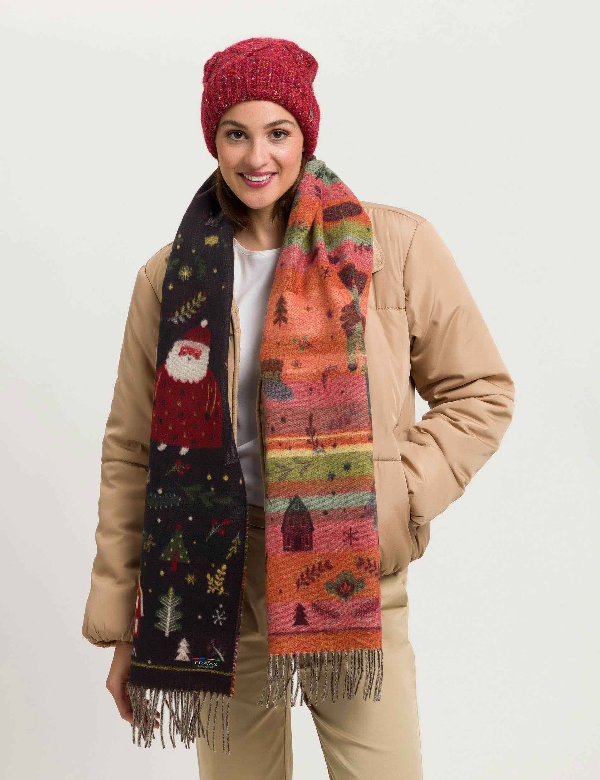 Cozy up with Cashmink® for the holidays with this fun colorful Christmas Santa inspired scarf! This graphic design will bring Christmas cheer to mid-winter when paired with your favorite jeans or winter coat.