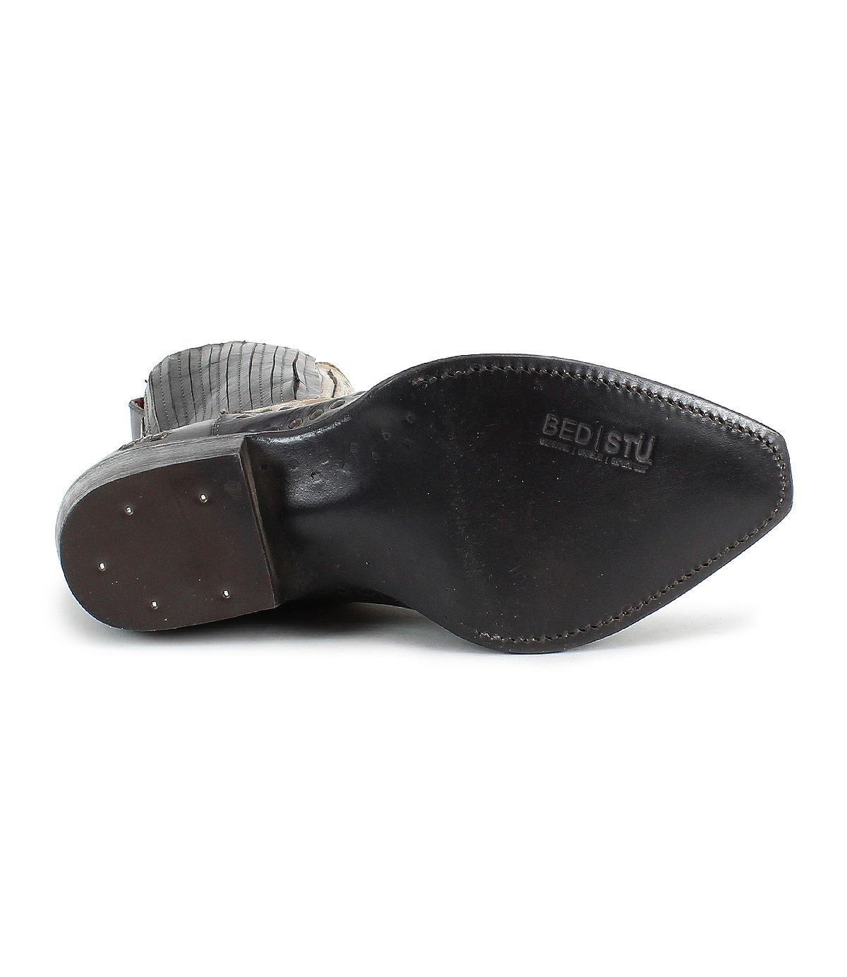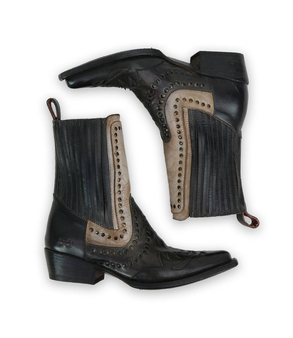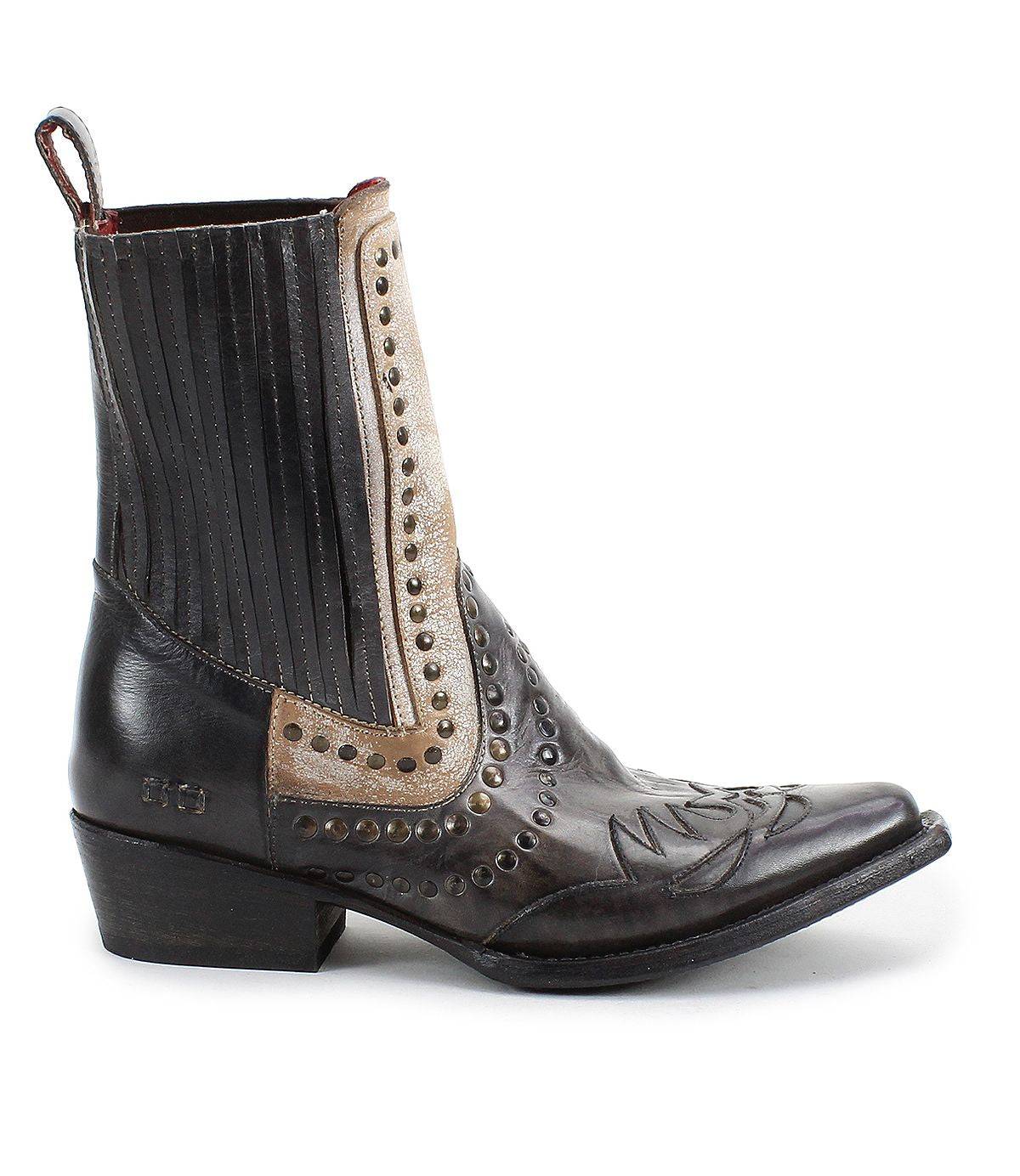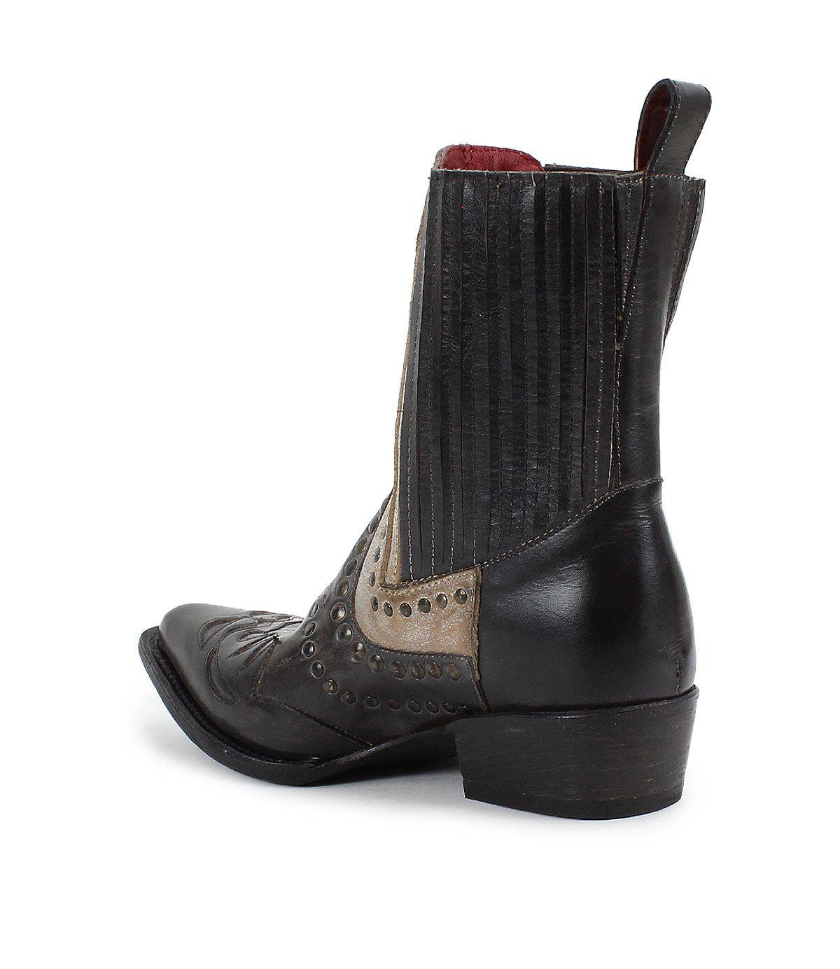 - Western-inspired boot with leather overlay and stud details