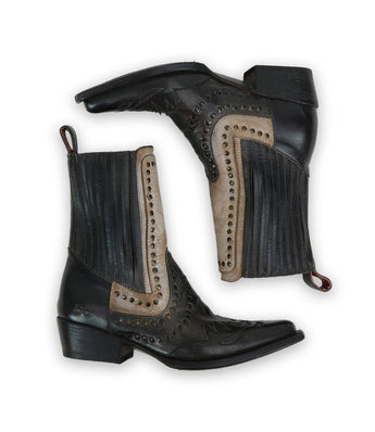 - Raise is a playful twist on a classic Western-inspired boot. With its vibrant color combinations, studded accents, and signature Western stitching, this short boot is all about making a statement. The snip toe adds a touch of traditional flair, while the hidden stretch goring ensures easy on-and-off for effortless everyday wear - combining modern style and functionality with tried-and-true Western construction.