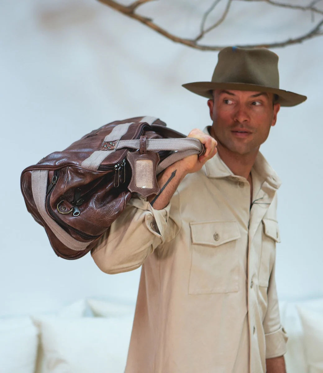 Designed with the traveler in mind, Ruslan can be carried on a plane, in hand or as a backpack. Durable canvas straps carry this beautiful leather duffle, with plenty of room for all your necessities. 3 outer zip pockets make finding everything quick and simple, and the zip top main compartment is lined with organic cotton and has 2 slip pockets and one zippered pocket inside. Carry yourself confidently with Ruslan, a handsome bag made for anyone.