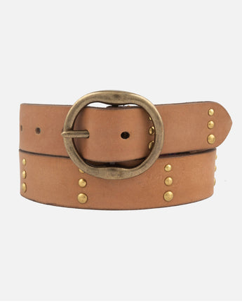 Dion | Round Buckle Leather Studded Belt
