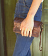 - Comes with two removable leather straps: clutch and crossbody