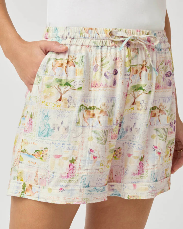 Channel vacation vibes with the Coastal Postcard Short. Consider its custom postcard print your sign to plan your next getaway. An elastic waist, wide slash pockets and breezy feel add to the relaxed feel of this pull-on style. Wear it with the matching Coastal Postcard Top to let everyone know you're OOO.