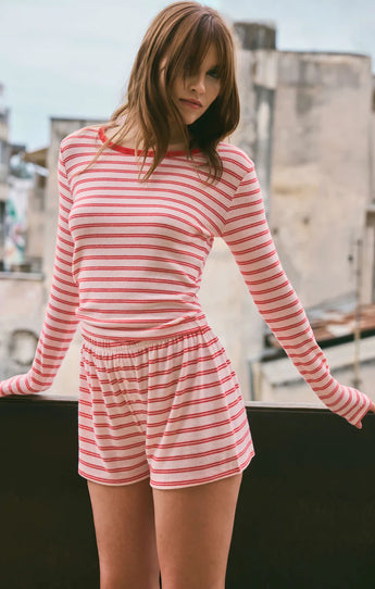 Soft brushed knit and classic stripes make this top a go-to for cozy nights in.