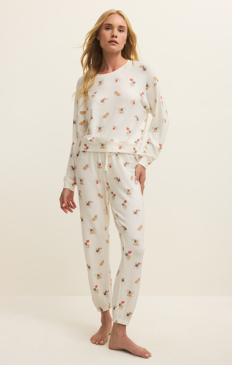 Brushed knit softness and a relaxed fit make this pup print jogger your new lounge essential.