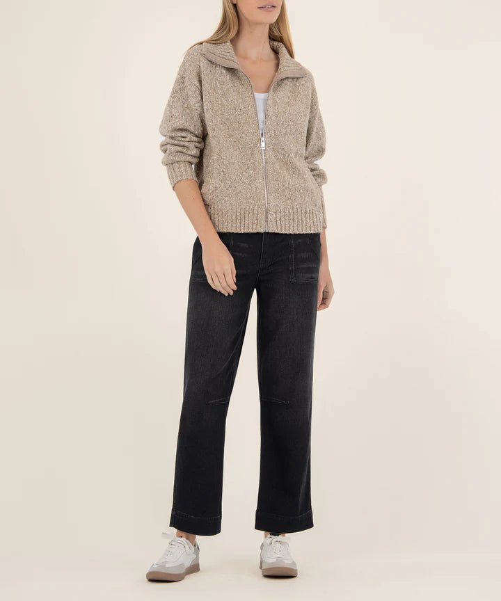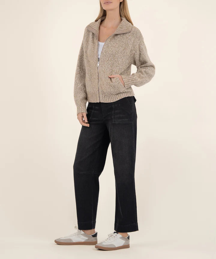 - Stay warm and stylish in this high neck sweater featuring a sleek front zipper closure for easy layering. Made from soft materials, it offers a cozy feel that\'s perfect for chilly days. Whether you\'re relaxing at home or heading out, this sweater delivers comfort with a modern edge.