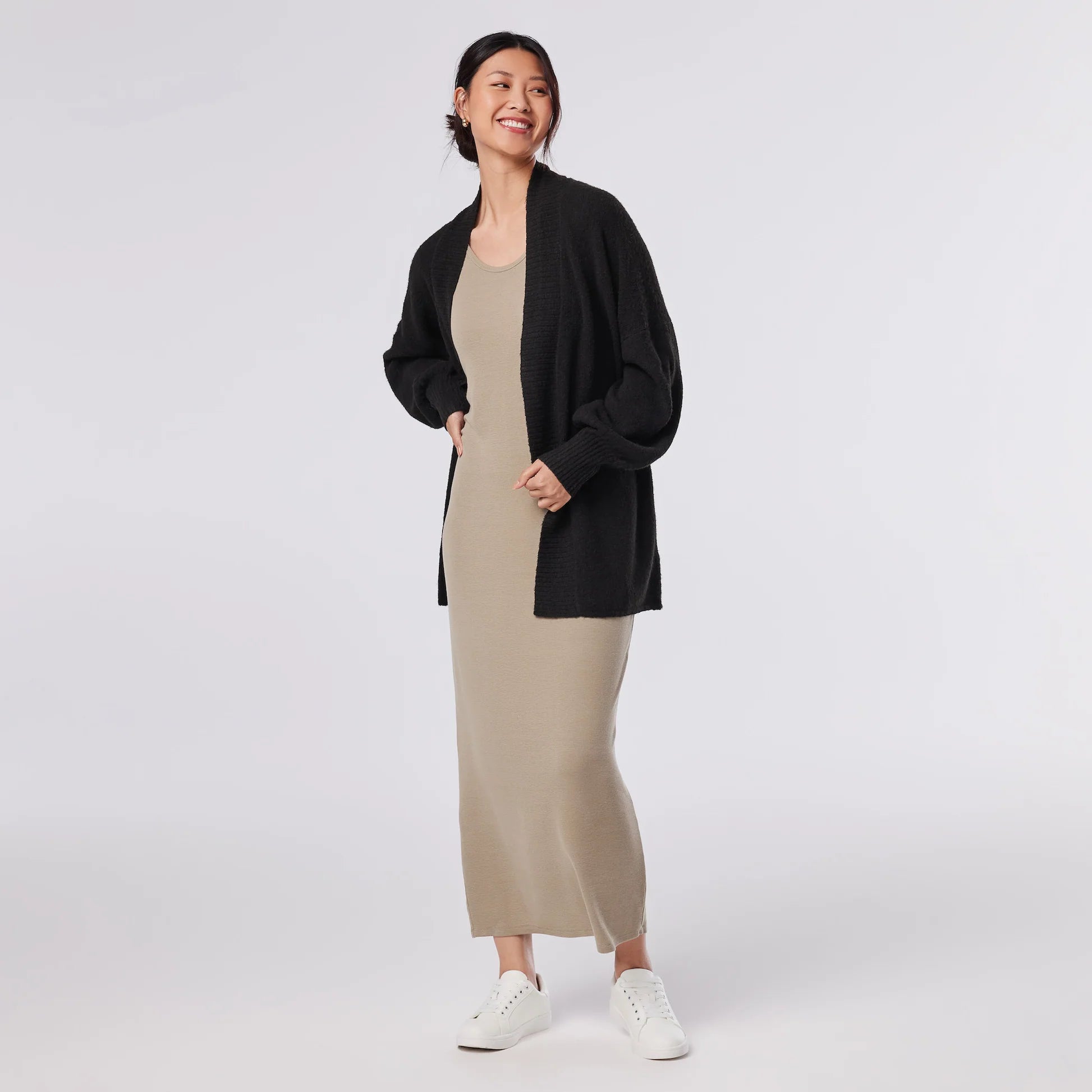 Fresh ribbed texture meets go-anywhere style in this fitted maxi.
