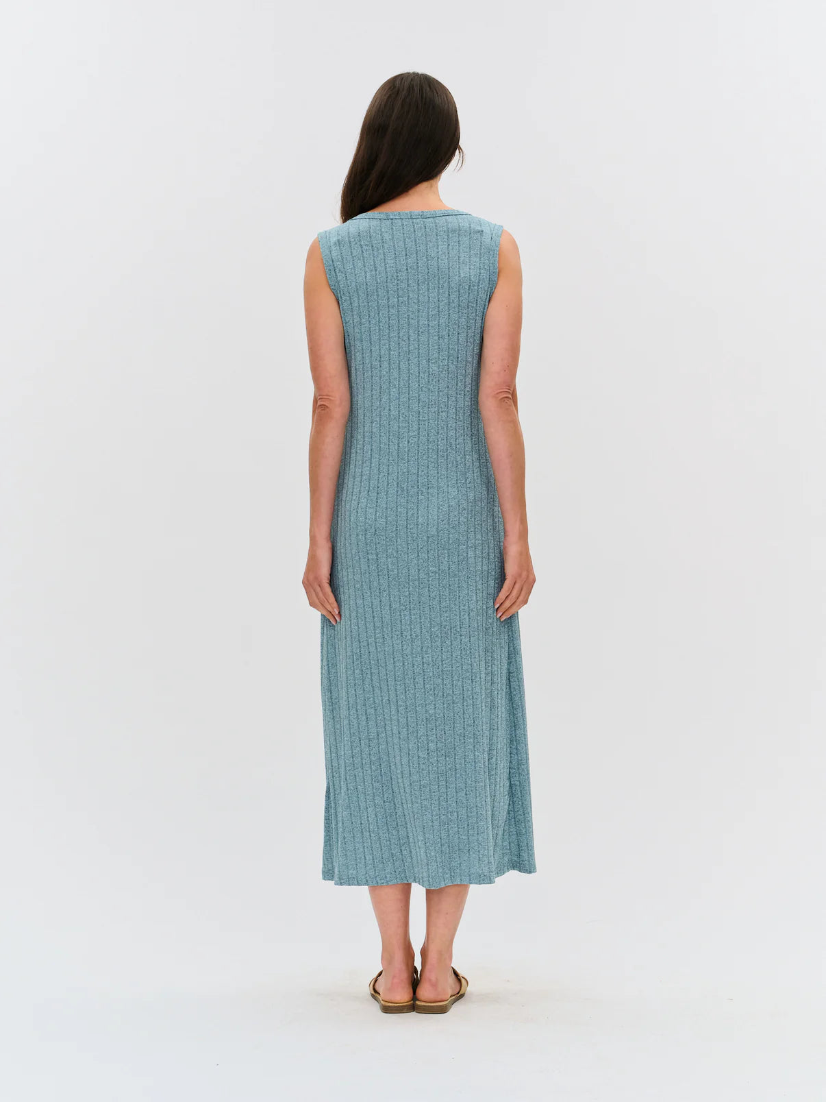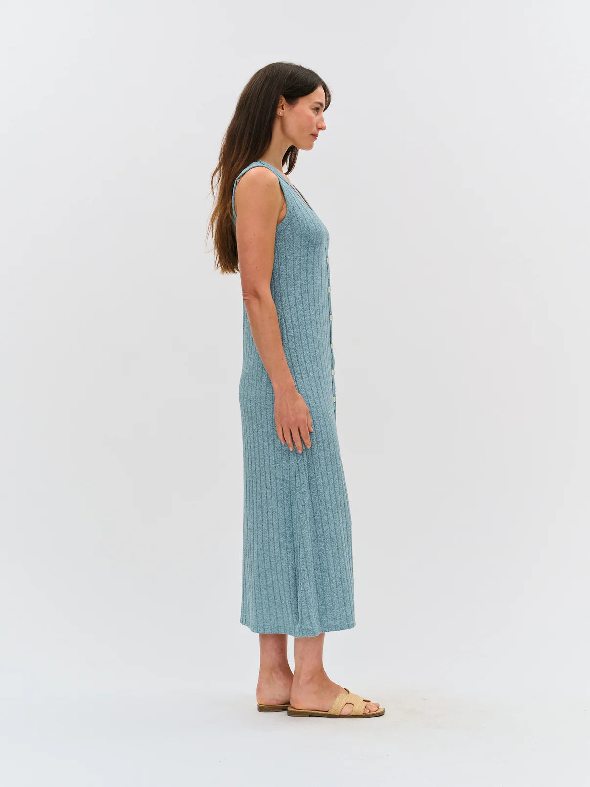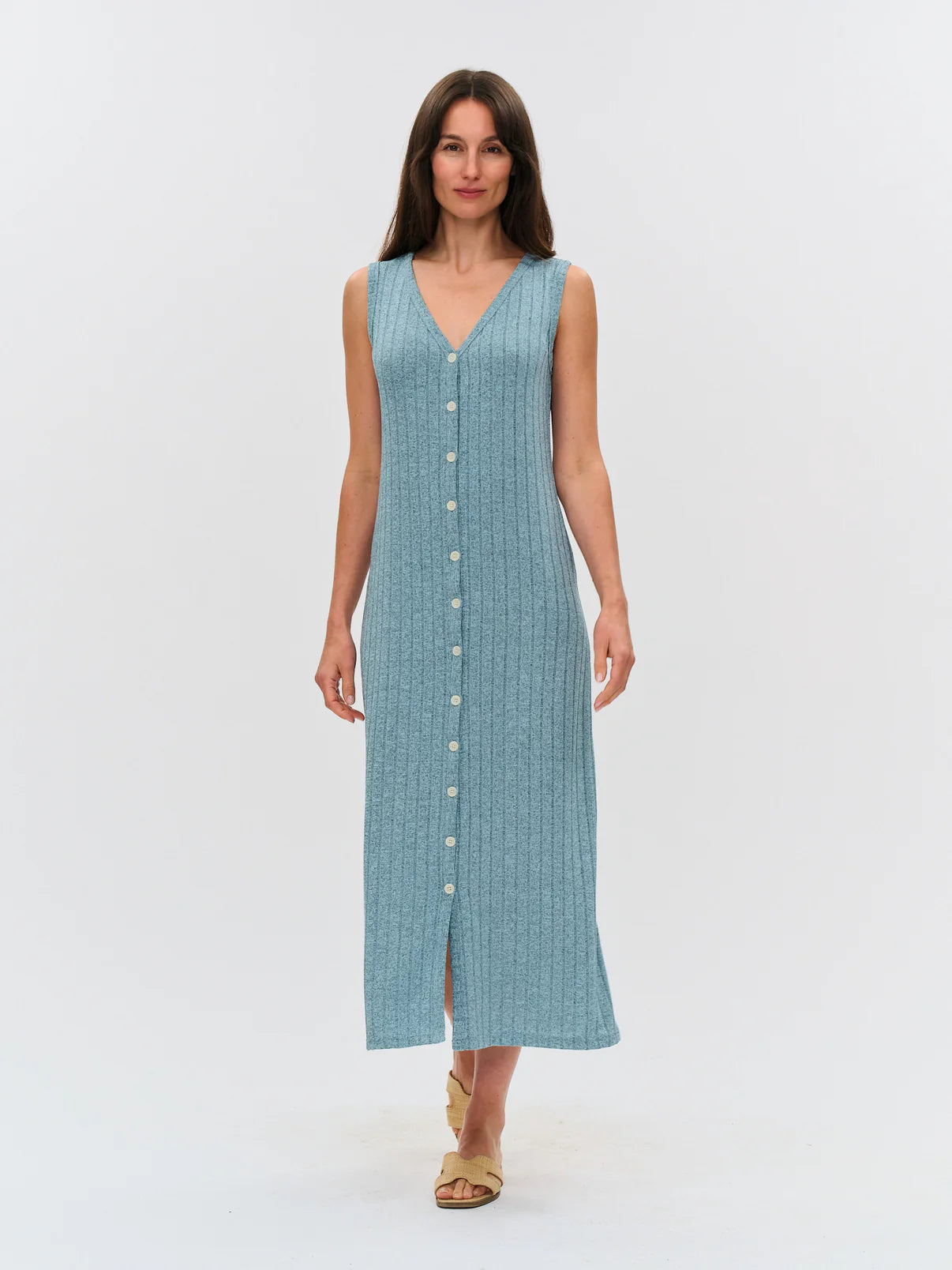 The Sutton Dress is the versatile tank dress of the summer. Crafted from breathable rib knit fabric, she features a flattering v-neckline and button down front for easy layering and styling flexibility. Cut to a graceful ankle length, it transitions seamlessly from casual days to dressed up occasions. The structured knit holds its shape while moving with you, making it the perfect wardrobe staple that works harder than it looks.