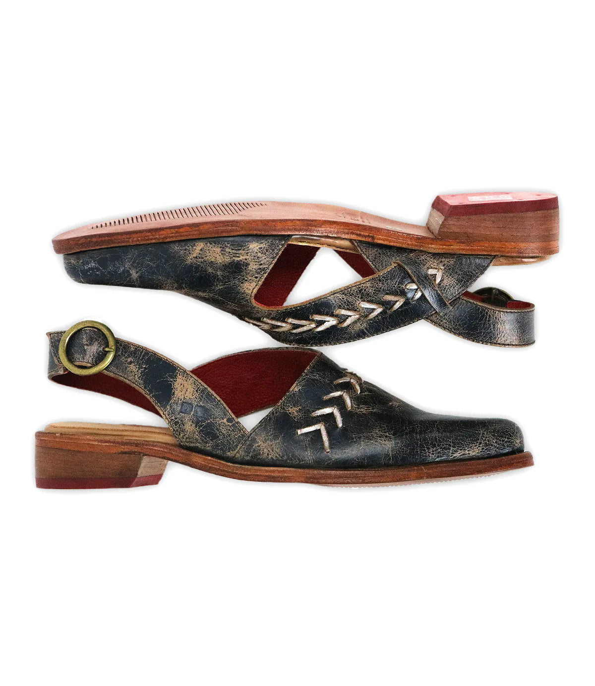 Join is a sling back flat that adds a playful twist to a classic style. With handwoven, color- blocking arrow inlays and a pointed toe, it stands out as both bold and unique. The adjustable buckle ensures a versatile and secure fit, keeping this sling back comfortably in place. Perfect for those who appreciate distinctive details, Join brings a fresh perspective to your everyday wardrobe.