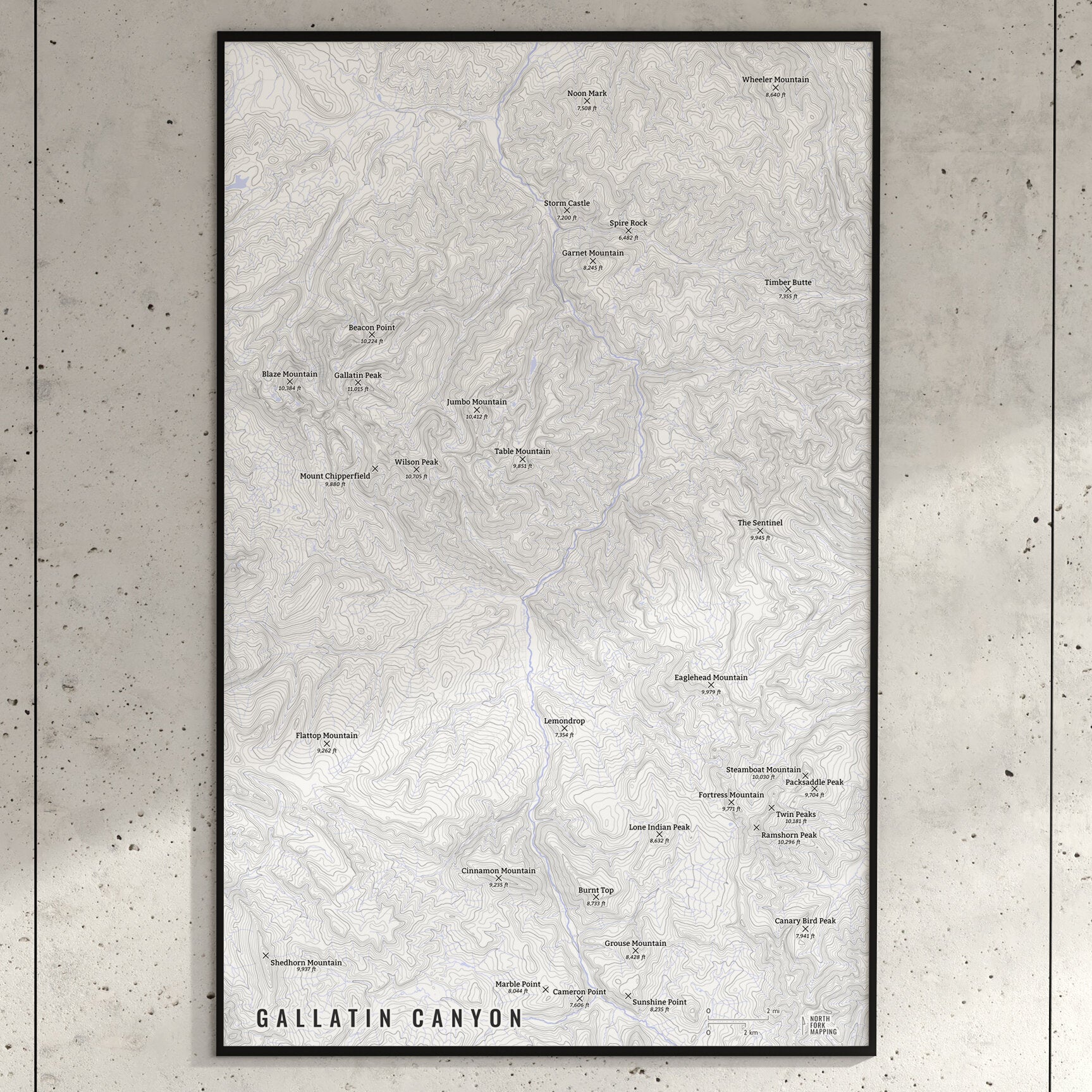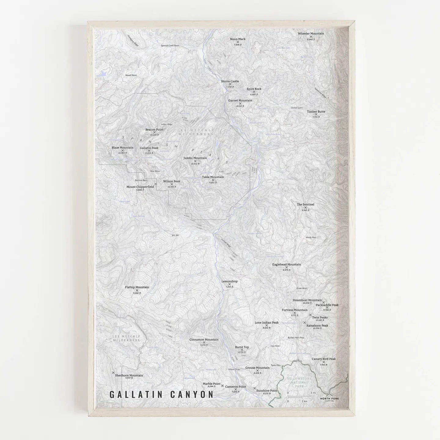A 16"x24" map of Gallatin Canyon. From Storm Castle to where 191 crosses into Yellowstone National Park, we’ve got you covered with this map. Lee Metcalf Wilderness and the Spanish Peaks make an appearance on the west side. Each print comes with backing board in a cello sleeve [not framed].