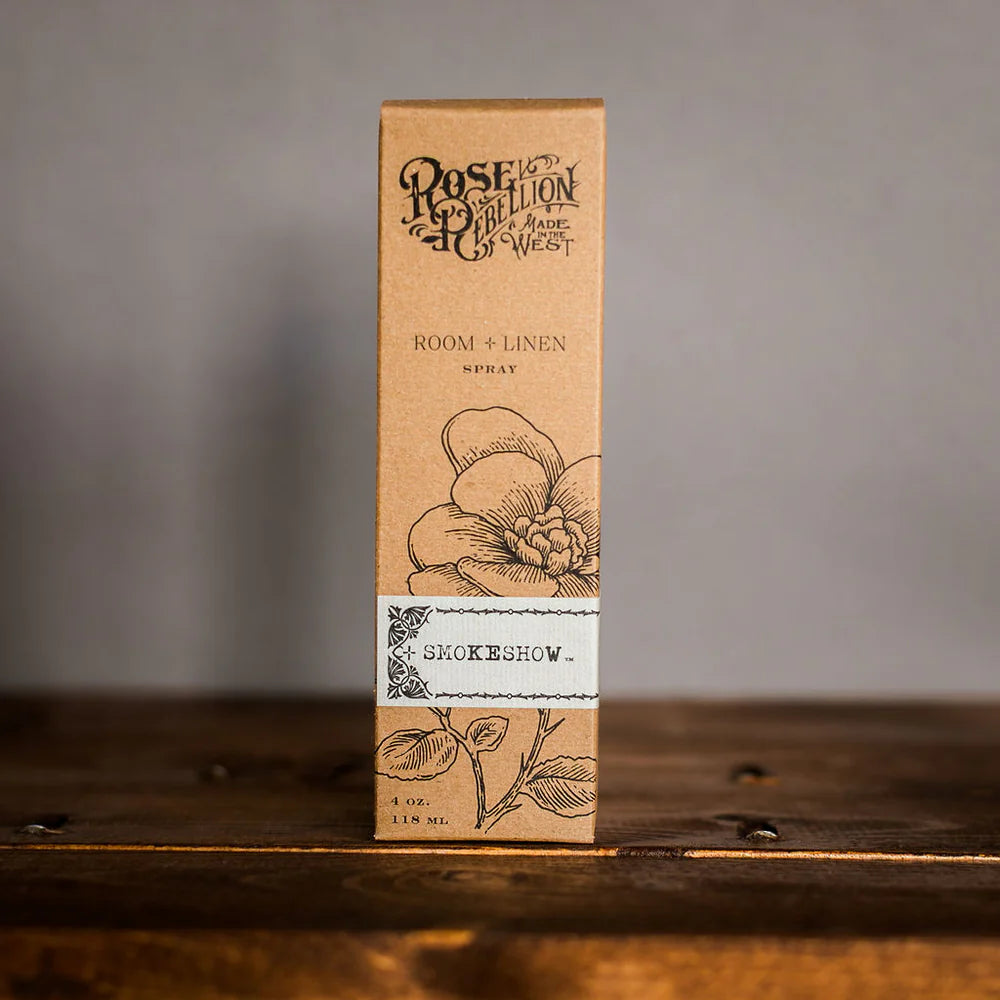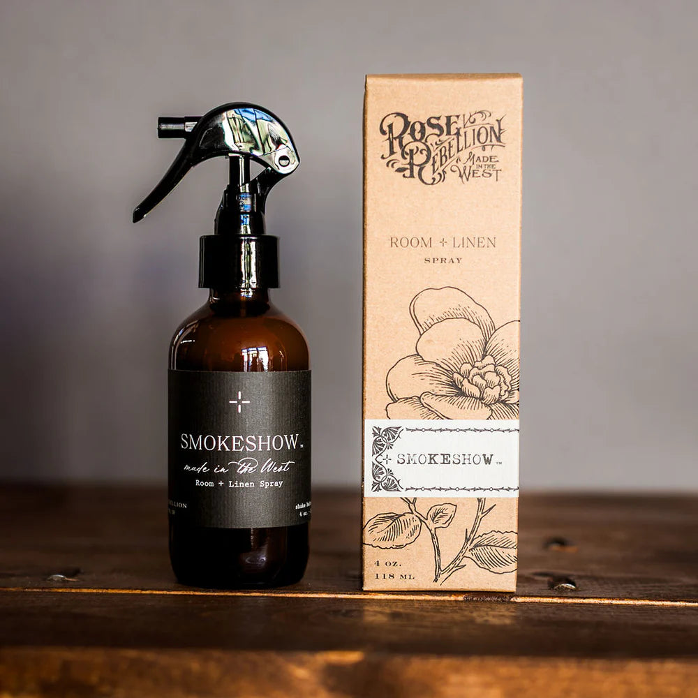 Envelop your space in a seductive, smoky warmth with the Smokeshow Room & Linen Spray. A burst of spices and pink pepper meets the fresh bloom of orange blossom, while juniper wood and fir add a grounding, woodsy undertone. Vanilla lends a hint of sweetness, while cashmere layers on a soft, luxurious finish. A final touch of smoke gives this spray an irresistibly alluring edge, perfect for freshening up your linens, softening your rooms, or setting a cozy, intimate mood.