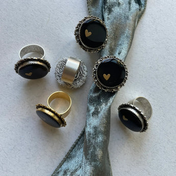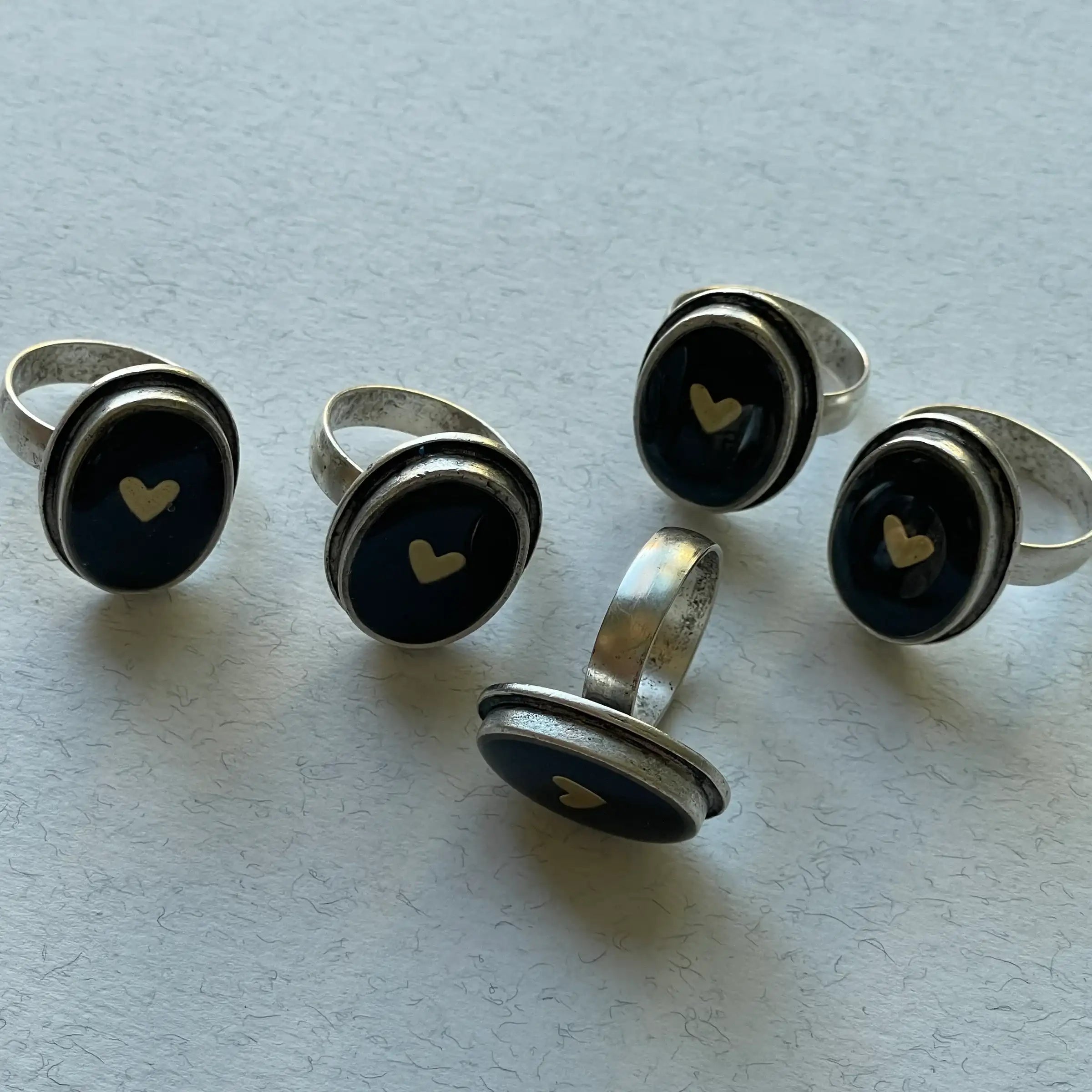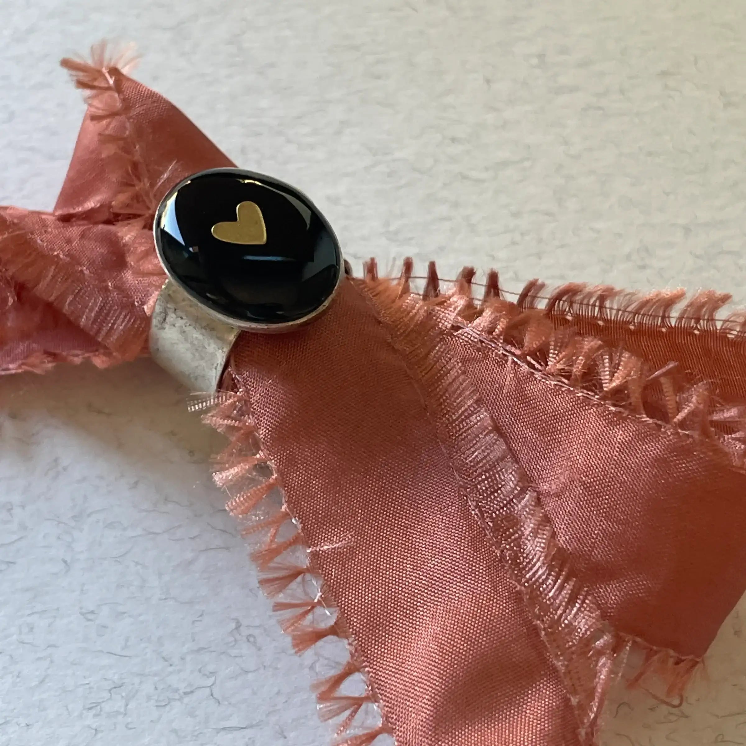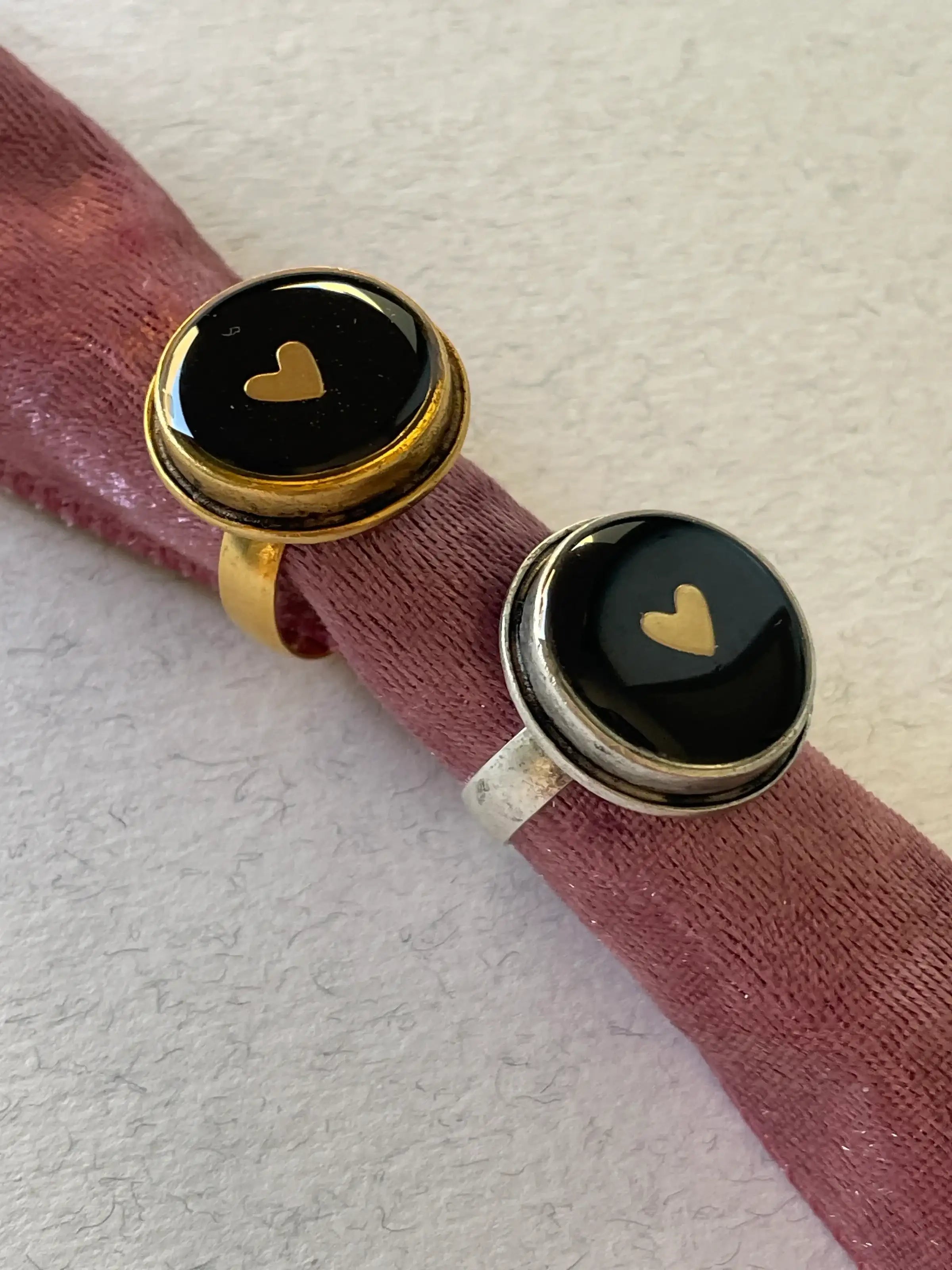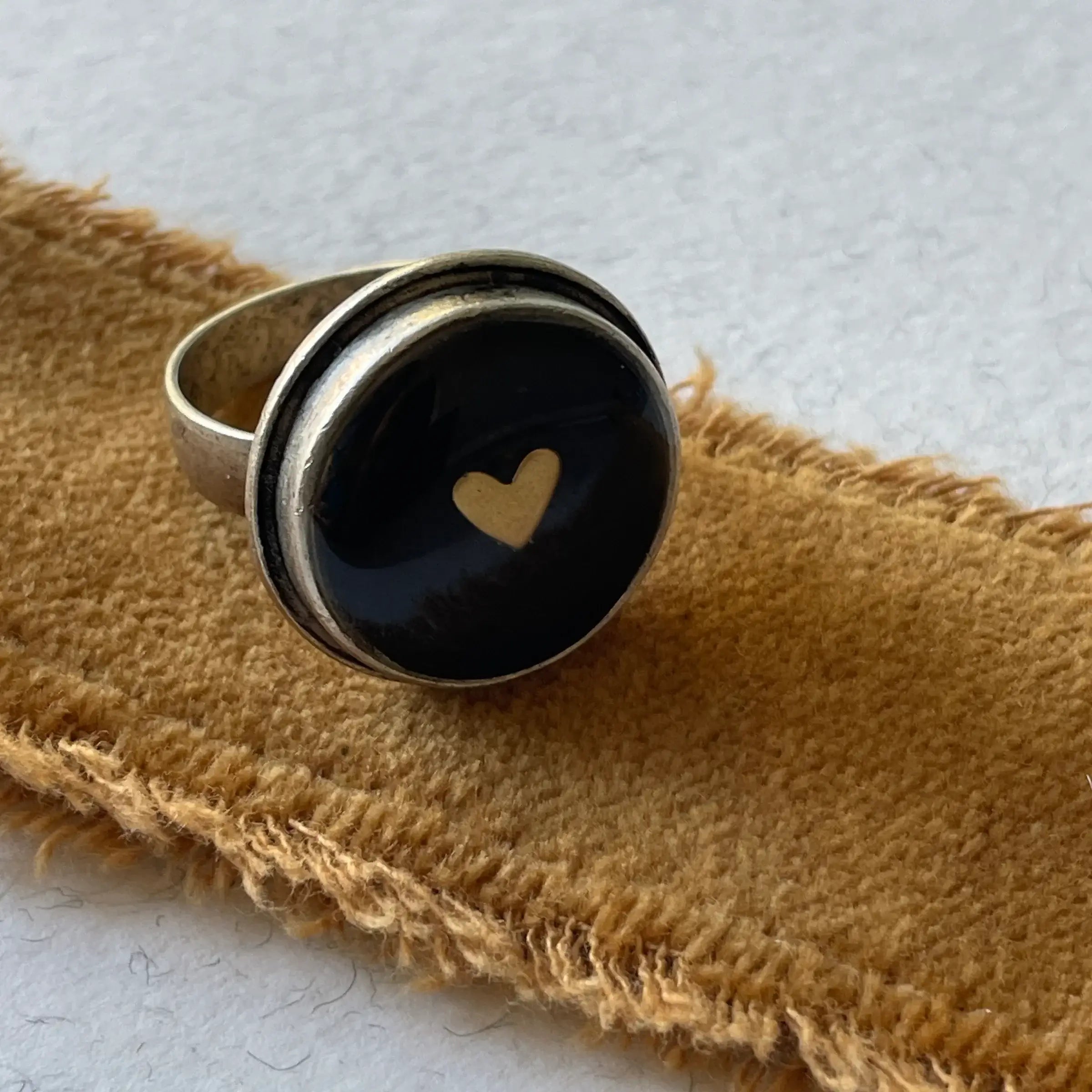 Background made with black clay with a golden heart set in, and covered with clear resin.