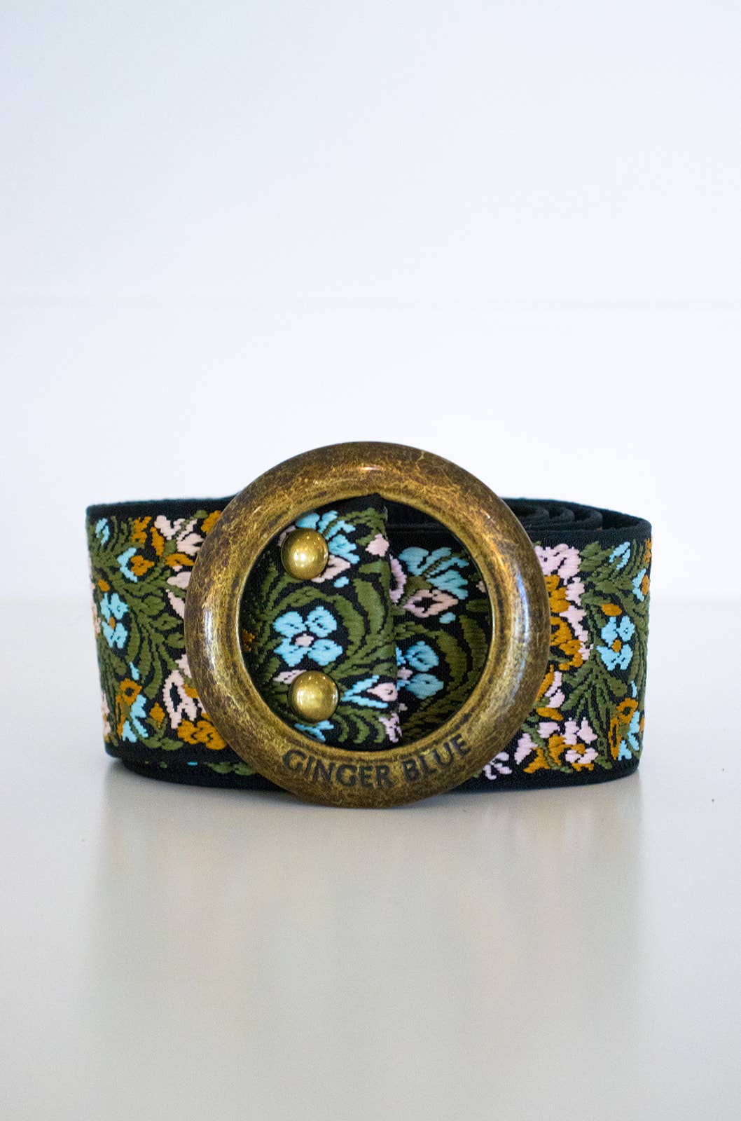 A cheery combination of bright blue, camel, blush and leaf green. The Super Bloom Collection is a strong seller. 2" wide Size 1:40" Size 2: 50"