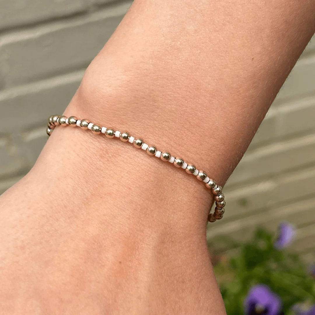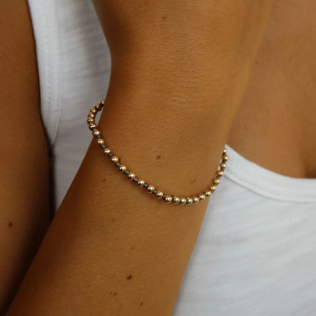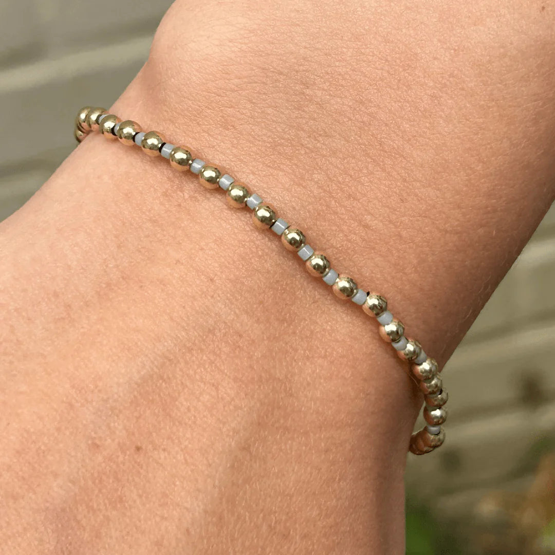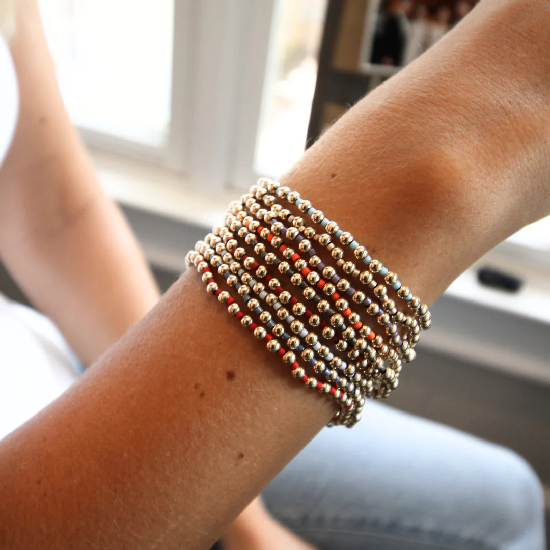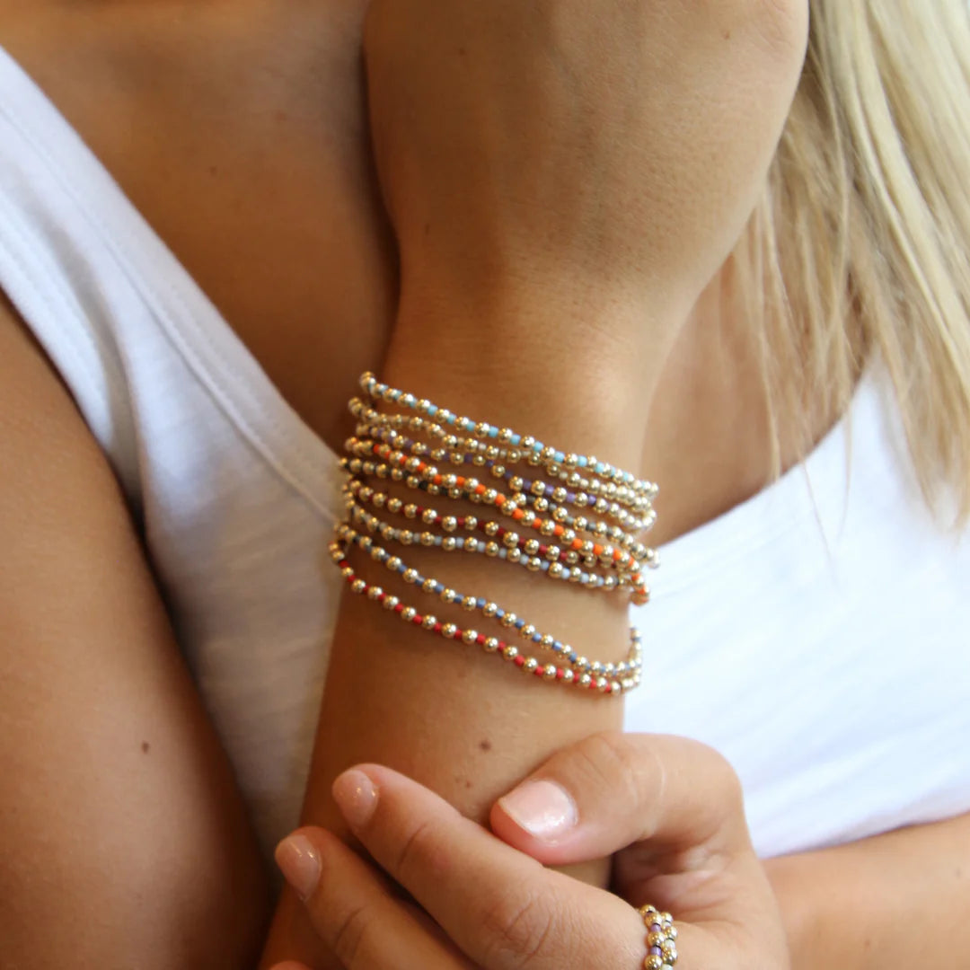 Our Color Crush Collection bracelets include delicate colorful beads dotted with 3mm gold filled beads. Perfect for stacking! Part of our erin gray waterproof collection.