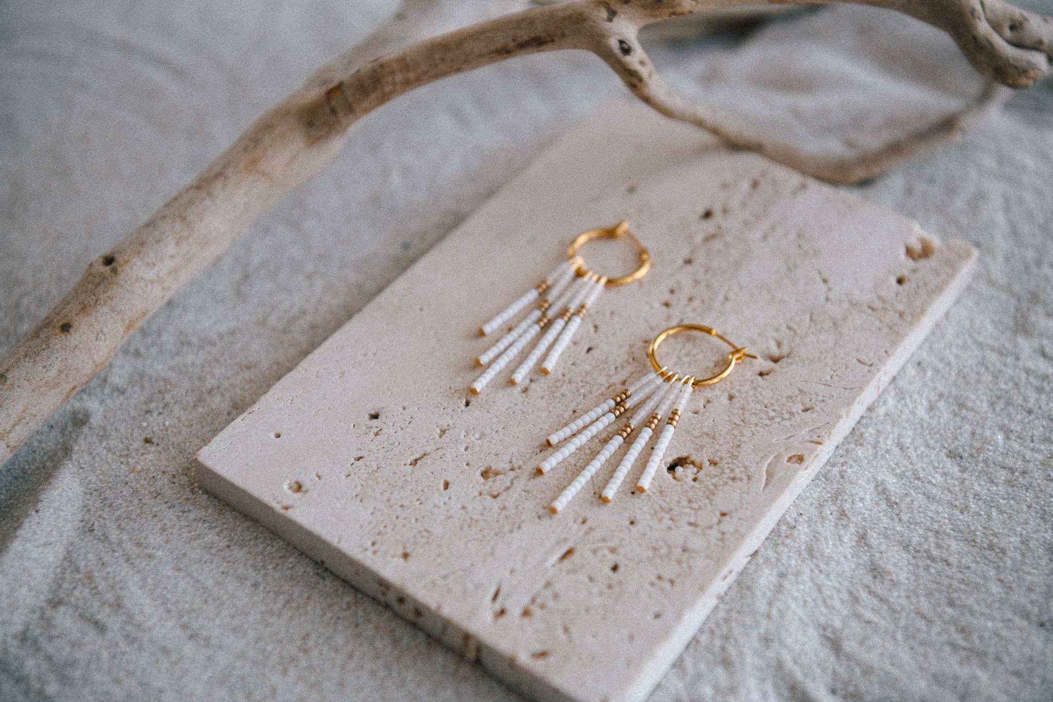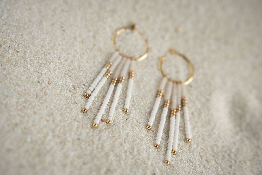 Get ready to turn heads with these Beaded Fringe Hoops Earrings, where boho-inspired design meets everyday glamour. Hand-strung beads cascade from polished gold hoops, creating movement and dimension that catches the light with every turn of your head.