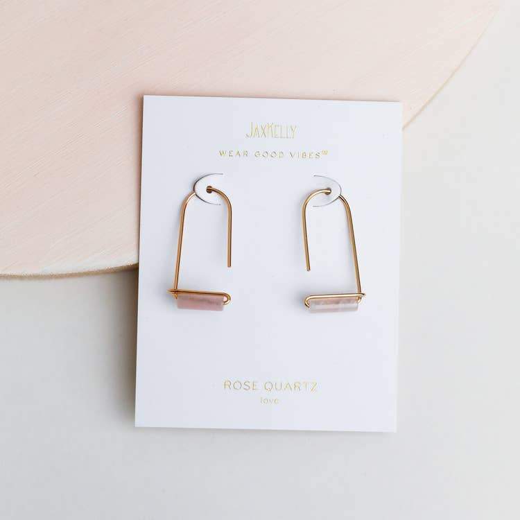 An easy-to-wear elegant drop earring. With a tubular rose quartz, put these on to elevate and stimulate your creative focus.