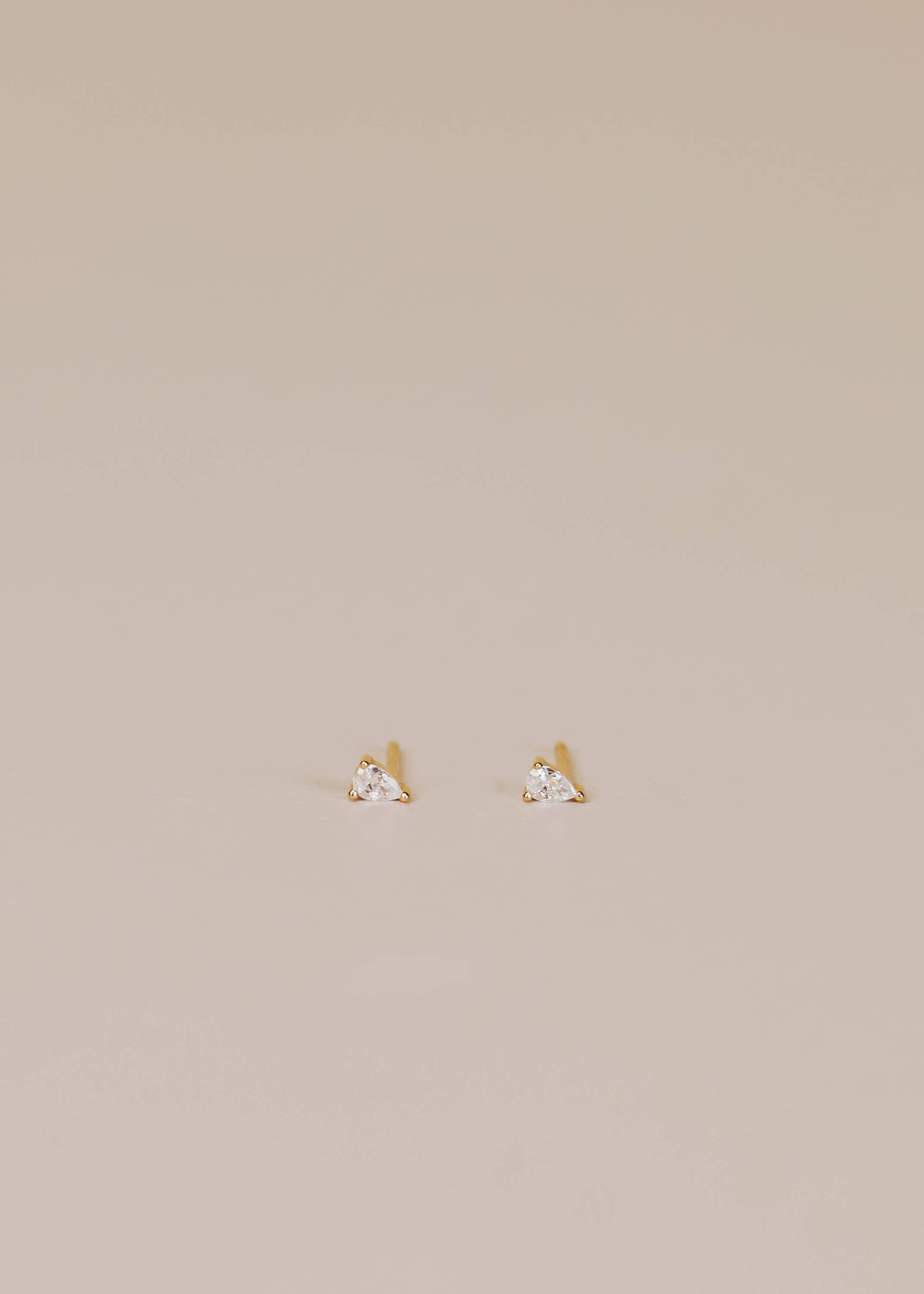 The teardrop earring showcases a pear-shaped white CZ stone that is set in a prong.