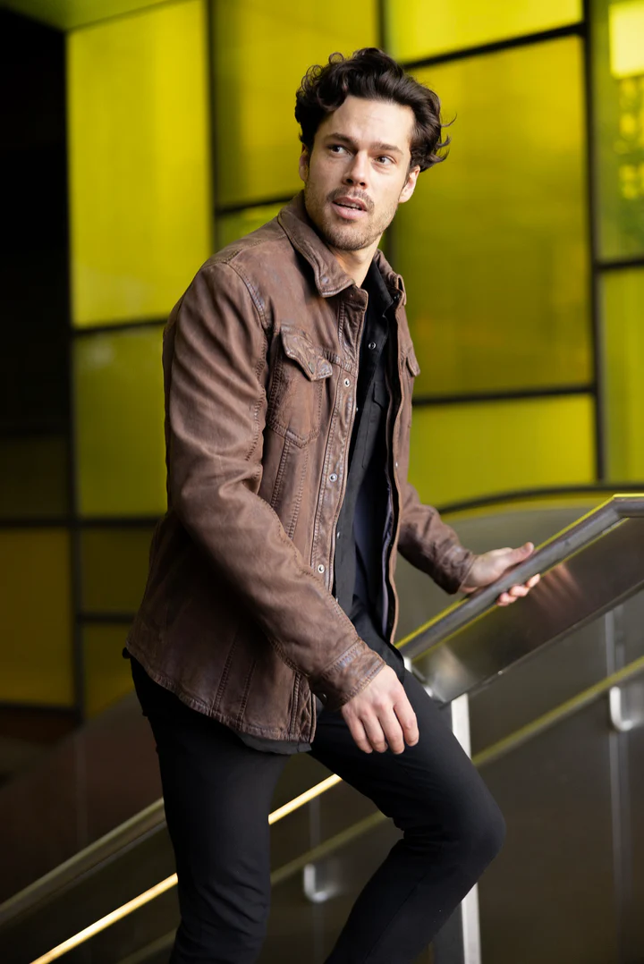 The Sedro Leather Jacket in brown is a chic and classic addition to any wardrobe. Crafted from soft nubuck leather, this button down jacket combines style and durability, making it the perfect choice for any occasion. Elevate your look with this timeless piece.