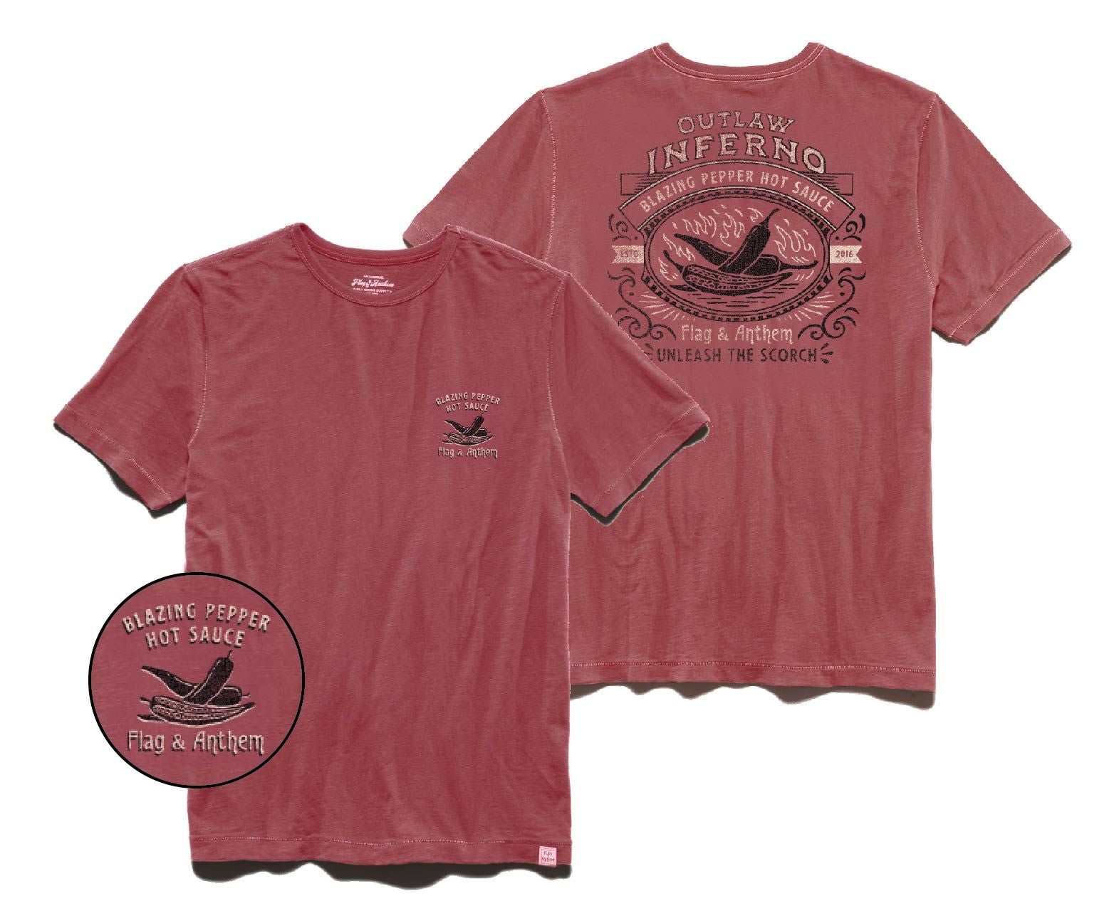 Spice up your casual look with the Blazing Pepper Hot Sauce Tee. Made from a unique cotton blend fabric that’s ultra-soft to the touch yet durable enough to withstand repeated wear, it’s equal parts comfortable and versatile so you can wear it anywhere. All-original Flag & Anthem graphic artwork. Classic crew neckline; tailored athletic fit.