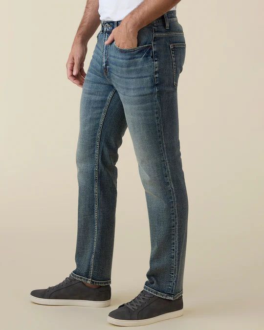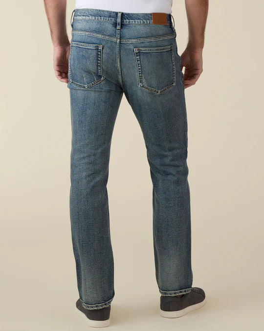 Made from premium cotton fabric infused with the perfect amount of stretch, these timeless straight-fit jeans combine comfort and style seamlessly. Traditional 5-pocket styling; zipper fly with logo button closure. Leather logo back patch. Medium wash.