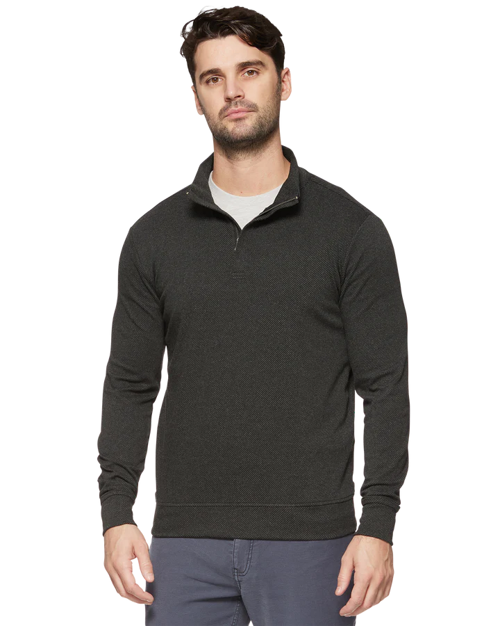 Comfortable, casual, and easy to wear, our Hero Twill 1/4-Zip Pullover is an optimal layer for weekends and weekdays alike. Crafted from a warm, mid-weight cotton blend fabric with a hint of stretch for easy movement and a naturally soft and breathable feel, this timeless pullover features a sophisticated heathered twill pattern for the perfect blend of rugged and refined. Standing mock neck collar; 1/4-length front zipper from chest to chin. Tailored athletic fit.