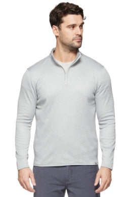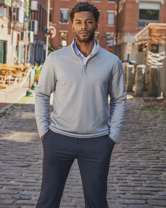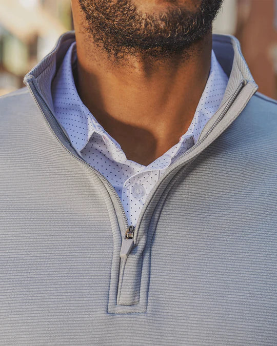 Feature-filled and structured with stretch factored in, the MadeFlex Tipton Performance 1/4-Zip pullover is perfect for the guy on the go. Made from a sweat-wicking, sun-blocking, premium performance fabric featuring a subtle tonal stripe and 1/4-length zipper front placket, it offers an elevated take on a classic silhouette. Wear this lightweight layer to the office or on the course for an effortlessly polished and timeless look. Standing mock neck collar; 1/4-length front zipper from chest to chin. Tailored athletic look.