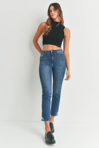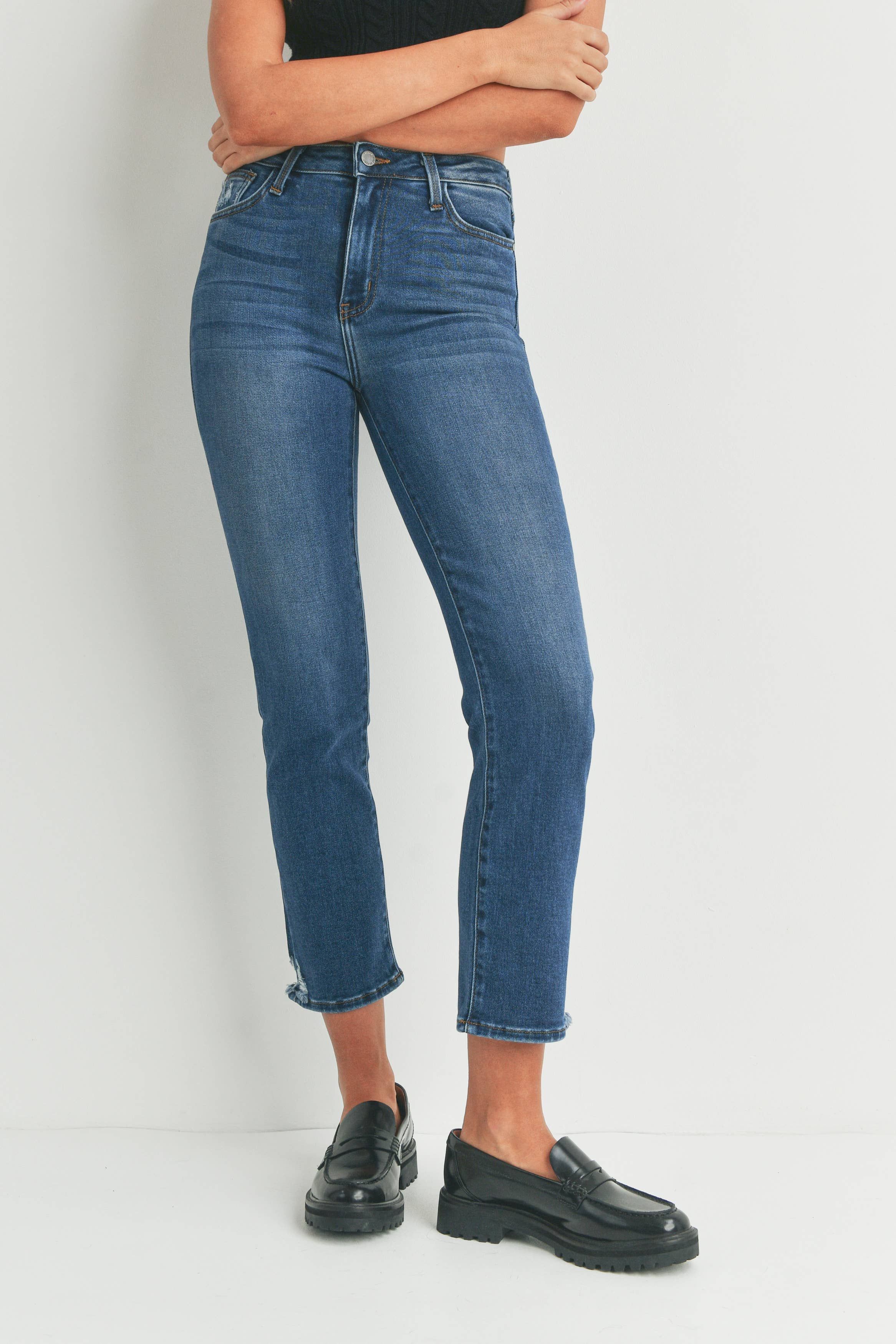 The Arrow Straight A true straight leg jean with light stretch and subtle distressing around the ankles.