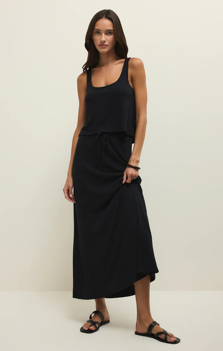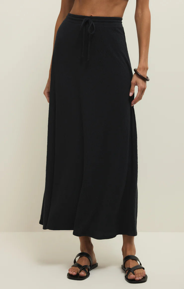Made in our textured puckered knit, this maxi skirt features an elastic tie waist and a back slit that adds movement and ease. Style it with the matching top.