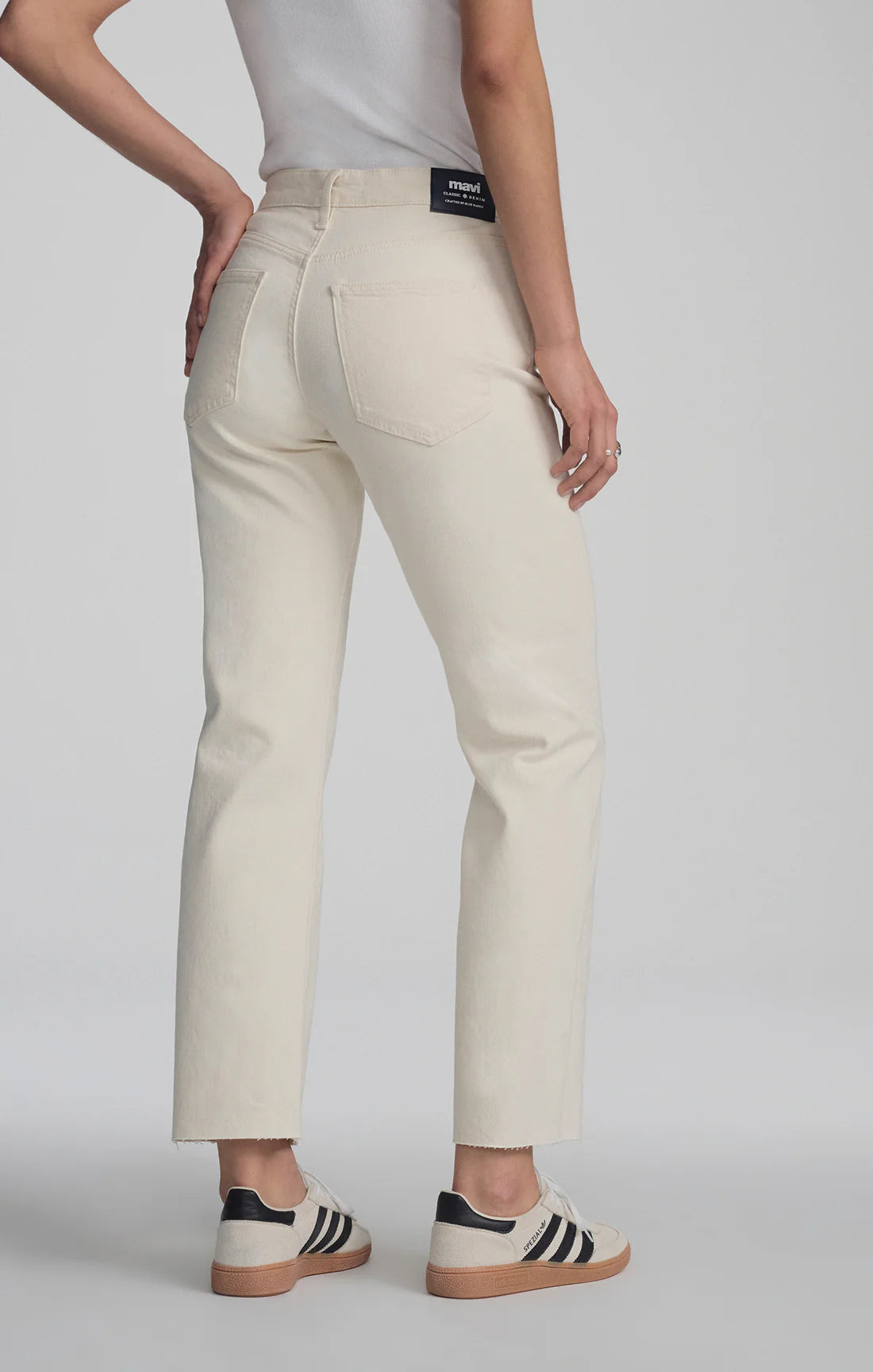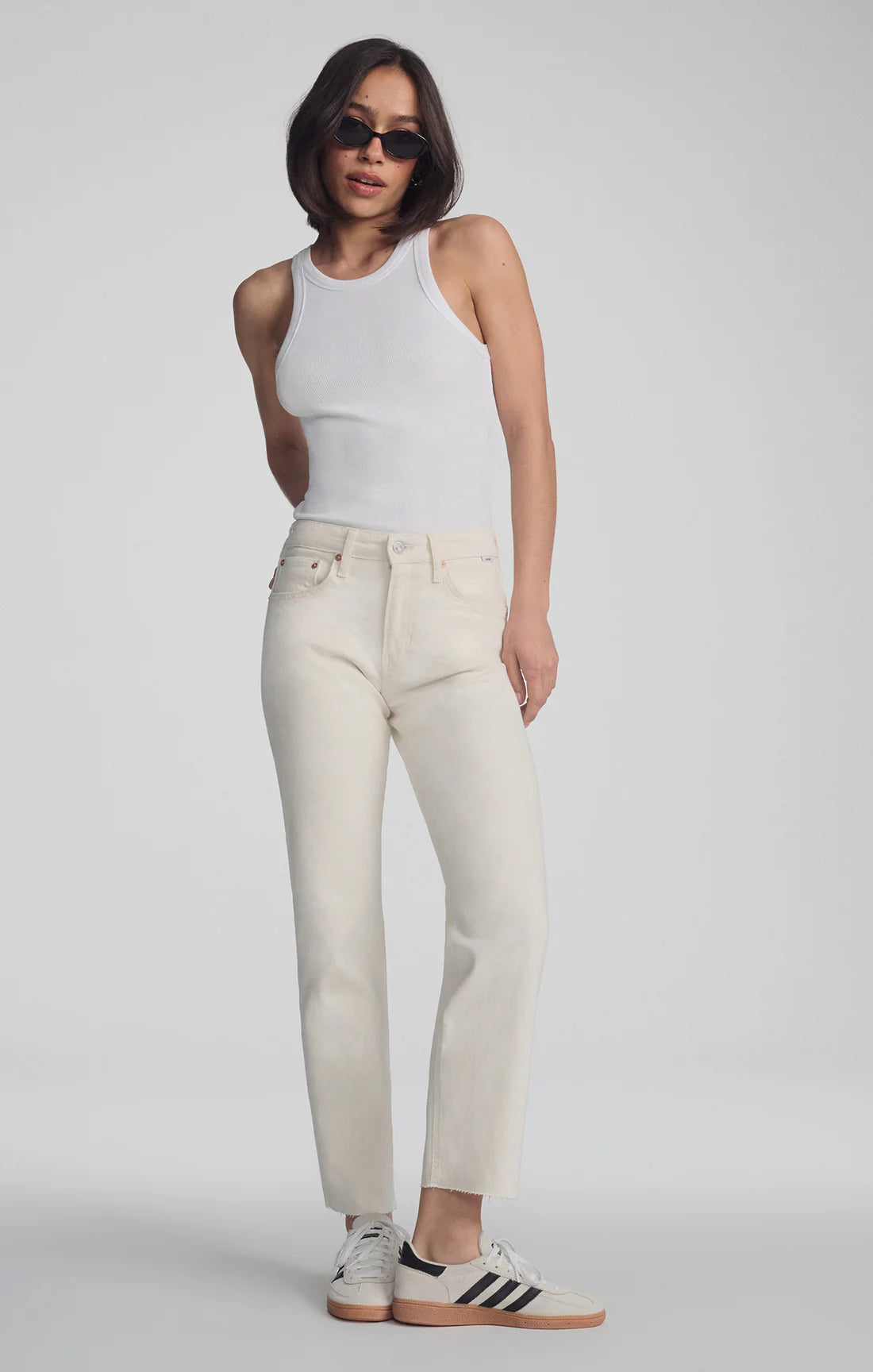 Warmer weather and sunny skies means bringing on the shades of light, bright denim. These straight leg jeans in an off-white wash have the optimistic, bold look and effortless fit that belongs in your closet this season.