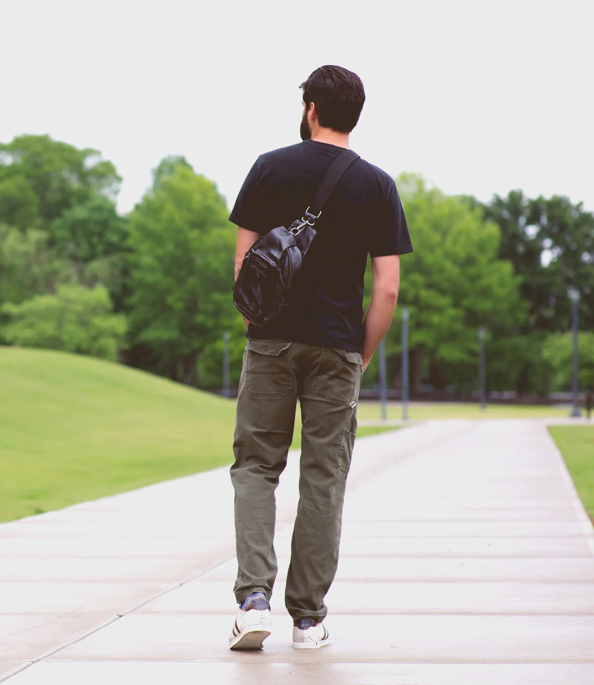 Couples might fight over this one, Beau is a functional leather sling backpack made with the softest leather and a durable strap. Suitable for him or her, Beau boasts an outer zipper pocket perfect to secure your phone on the trek through downtown or the hiking trail. Another zipper compartment fills the rest of the bag, ideal for your water bottle and whatever else gets you through the day. Beau is compact and built with function and hands-free activities in mind.