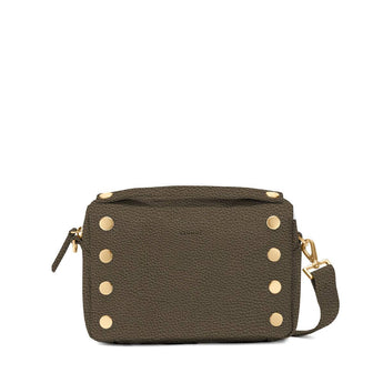 Specifically designed for customers who prefer a compact crossbody with a relaxed look, the Evan can be worn over the shoulder with a removable and adjustable crossbody strap. Or, carry it by its elevated top handle. This design pays homage to camera bags, with an East-West look. Featuring Hammitt's signature combo of black leather, brushed gold hardware and a statement red zipper.