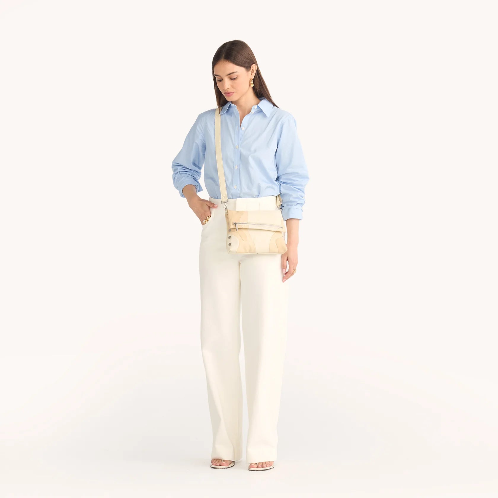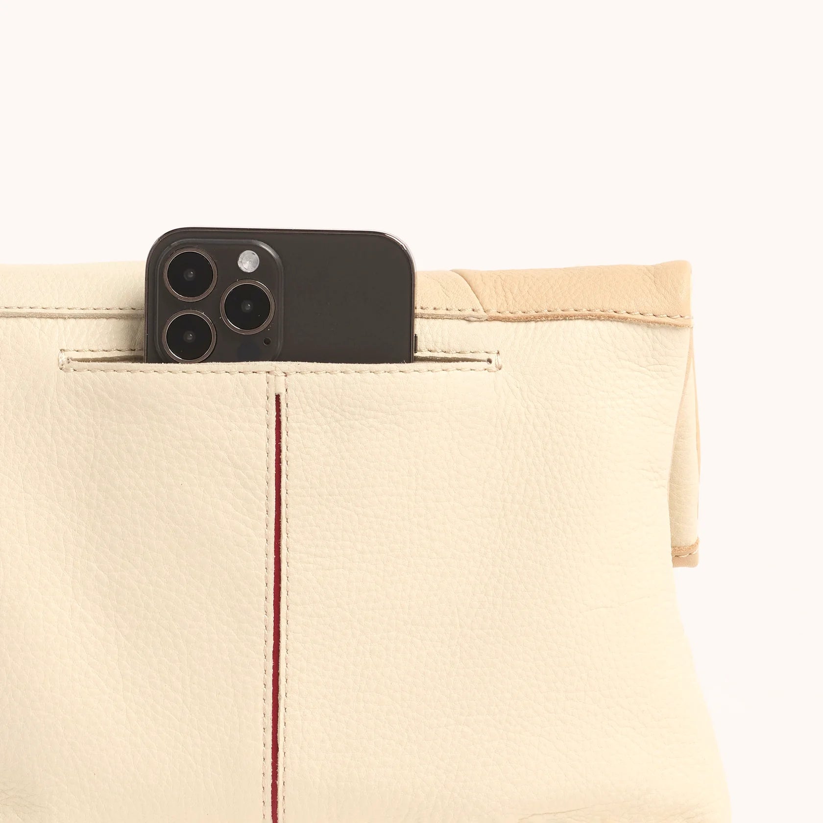 Because you're a VIP. Our all-time best-seller, this VIP clutch features an optional strap and subtle embossed rivets. From two zippered pockets to a credit card slot, two interior drop pockets, and an exterior phone pocket, this bag was designed with intention and organization in mind. Plus, you'll find a subtle strip of red peeking out along the bag's back seam. We're classy like that. Spring’s Coastal Cream collection features a monochromatic trio of neutral cream leathers, with paneling inspired by topographic maps. Featuring Coastal Light Pebble, a soft cream with yellow undertones, Coastal Mid Pebble, a light tan with pink undertones, and Coastal Dark Pebble, a darker tan blending yellow and pink undertones, this drop captures the depth and dimension of California’s iconic landscapes.