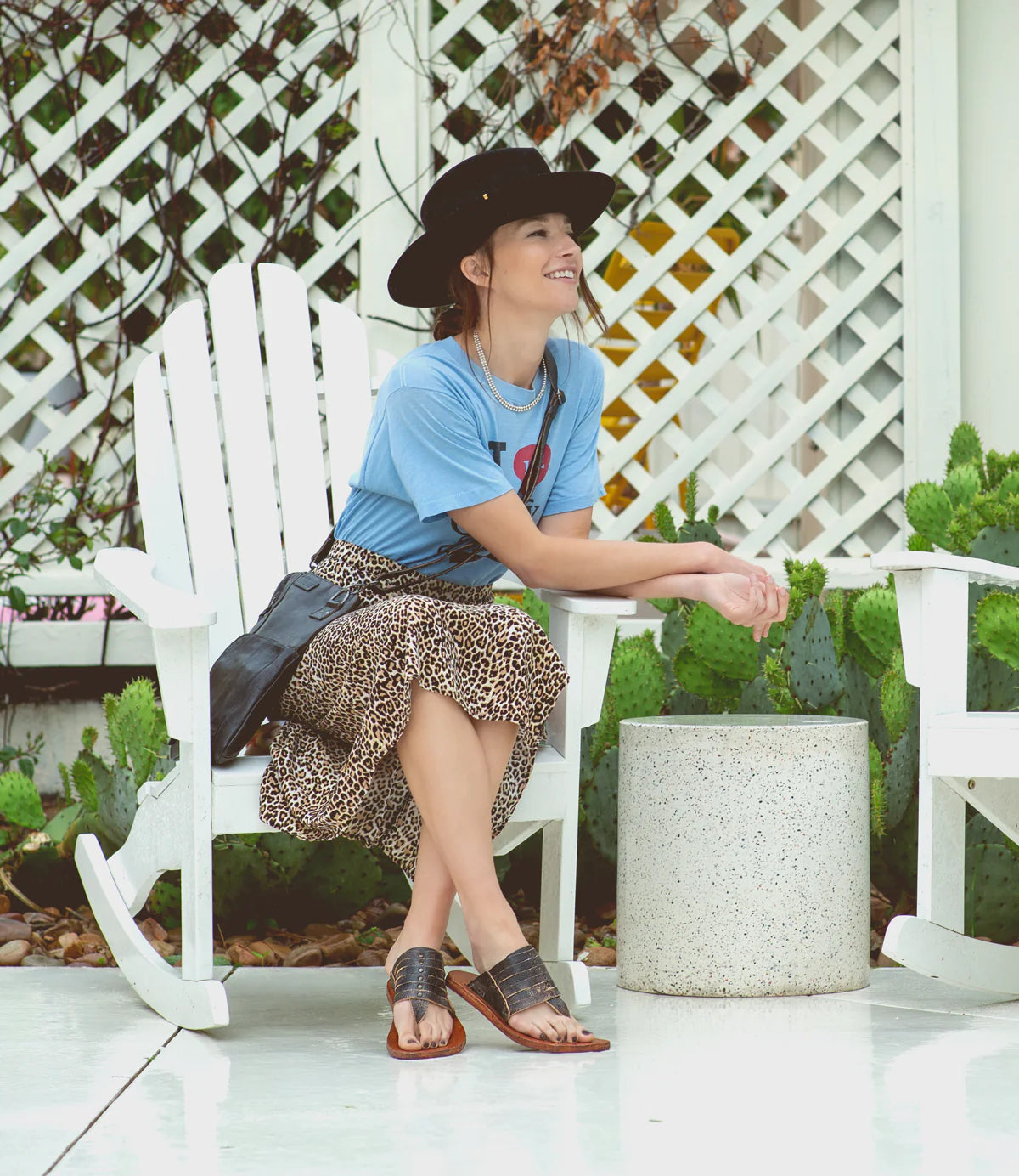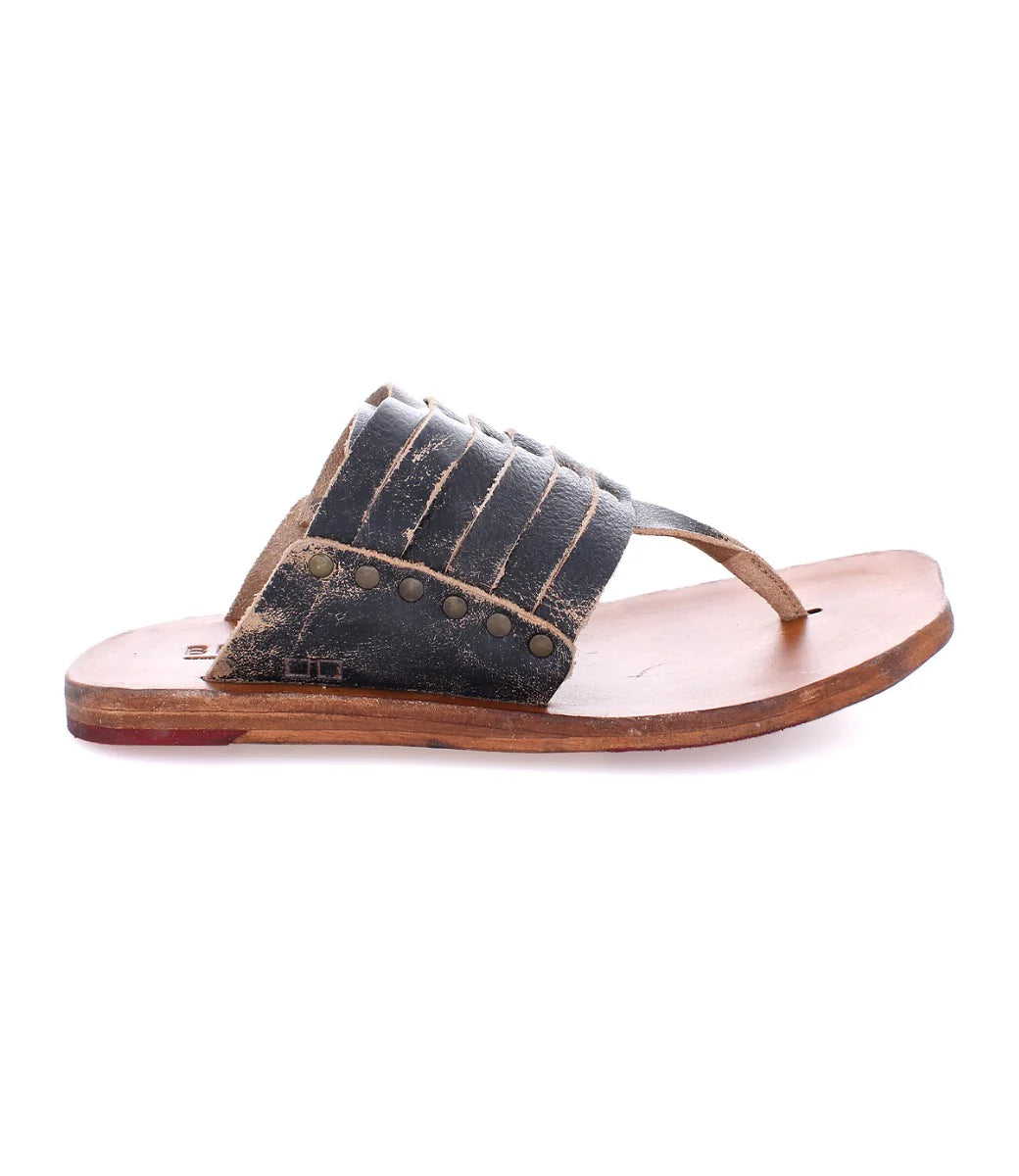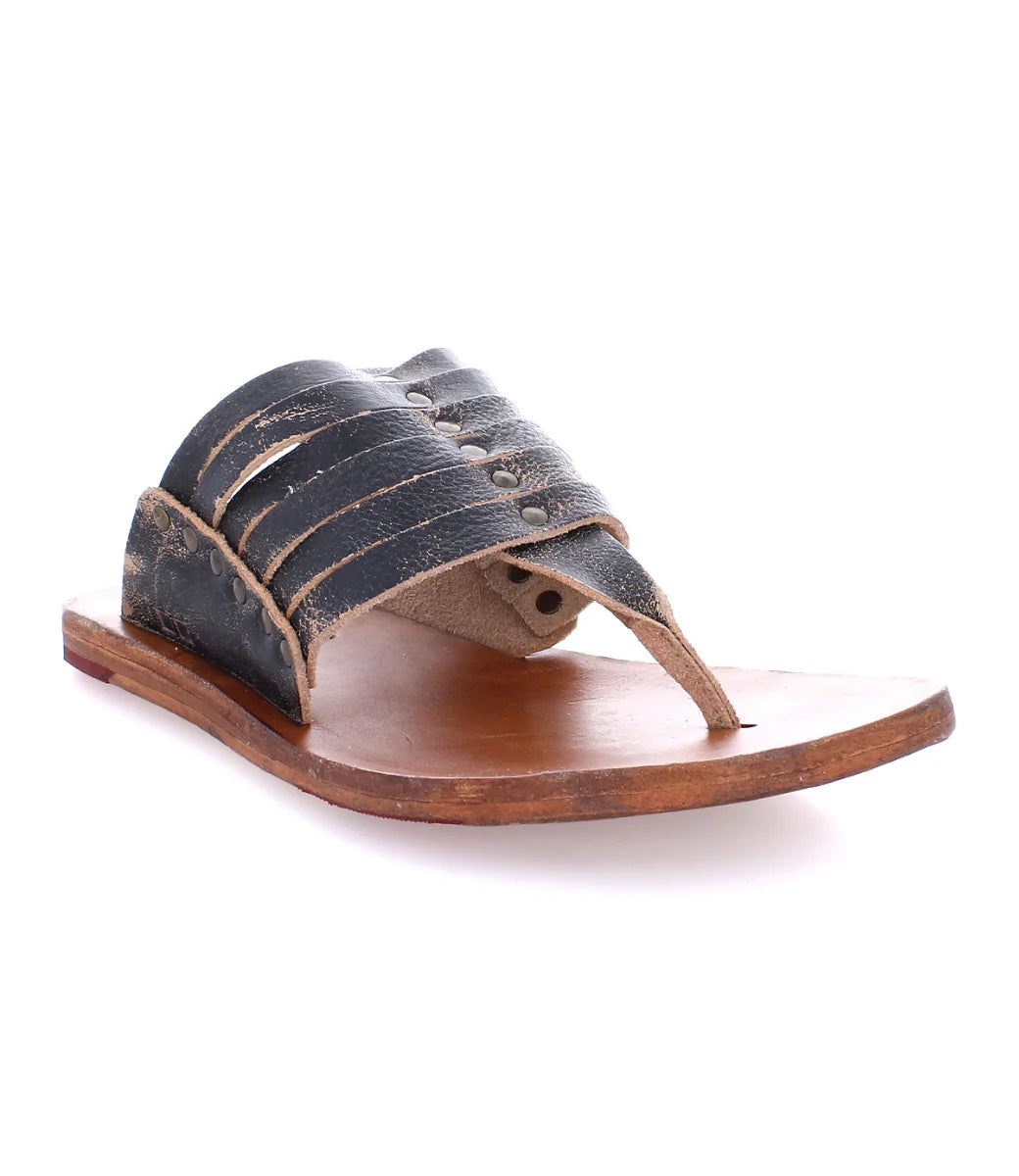 Styled with sustainability check out Nemesis. A raw edge, thick gauge leather thong sandal created with a twice tanned leather insole and outsole. Vibram outsole inserts provide traction for each step. Flexibility and comfort were top of mind when creating Nemesis. The upper is adorned with soft leather straps and metal stud detail. Nemesis is a thong made to last, in just a few clicks she can be the newest addition to your summer footwear collection.