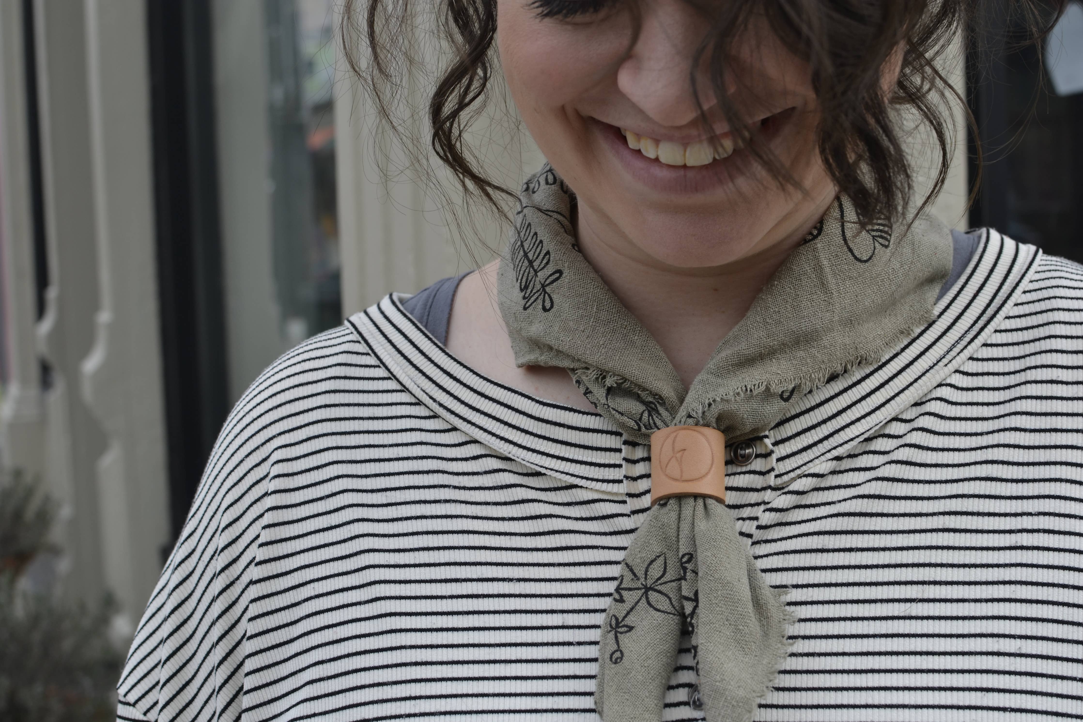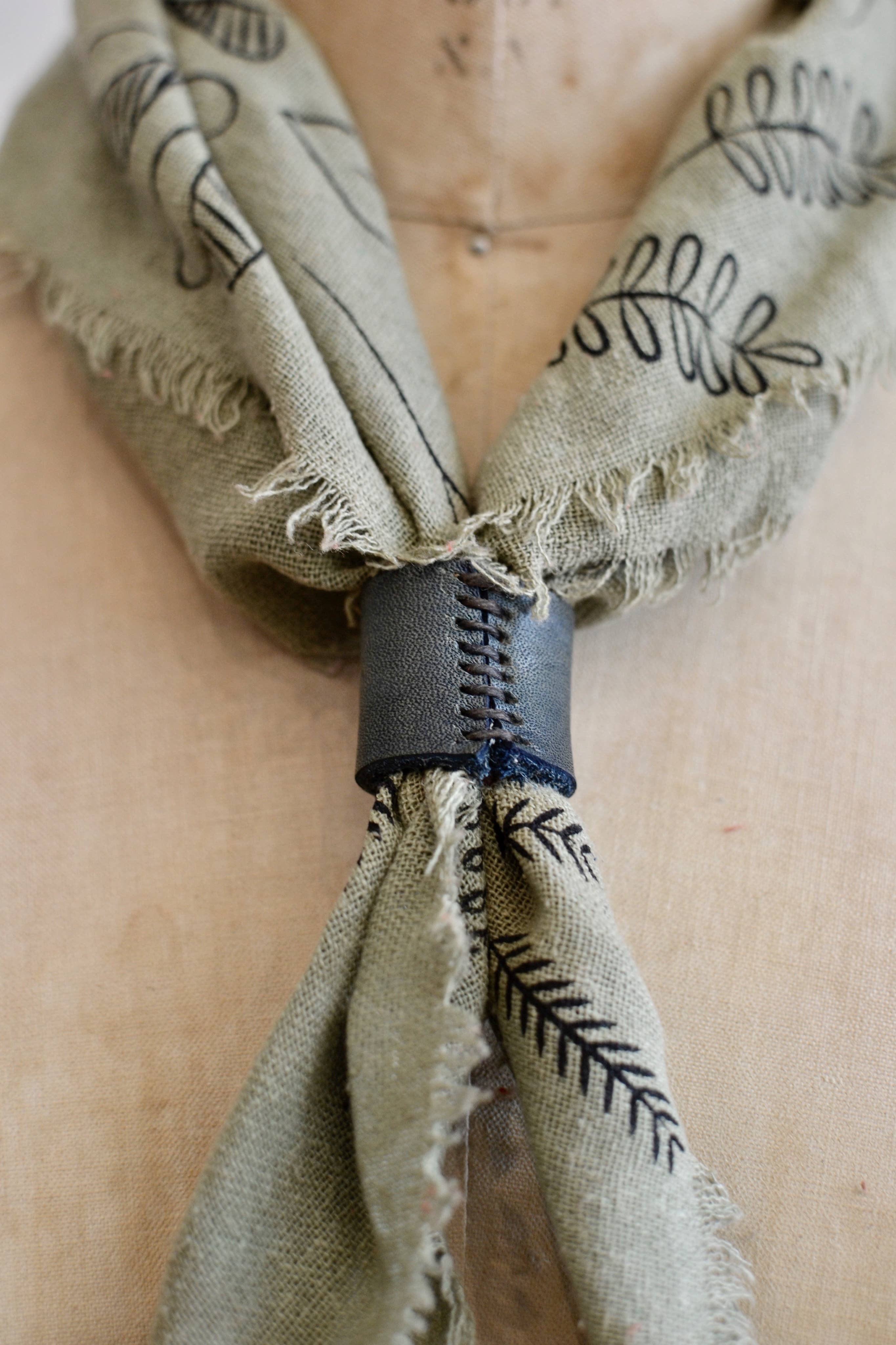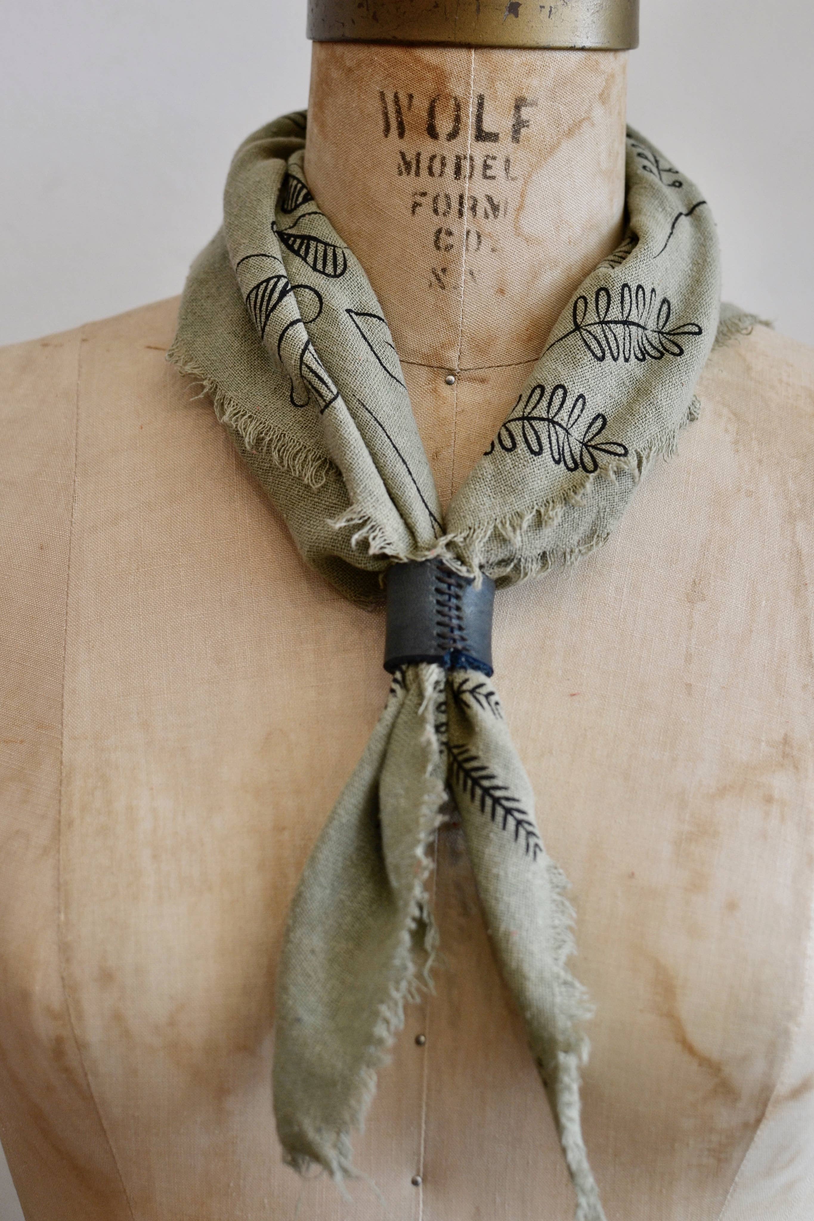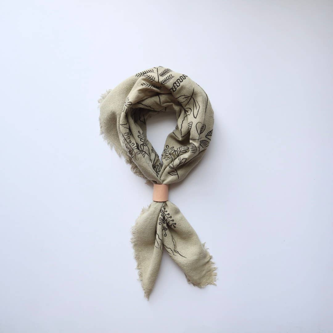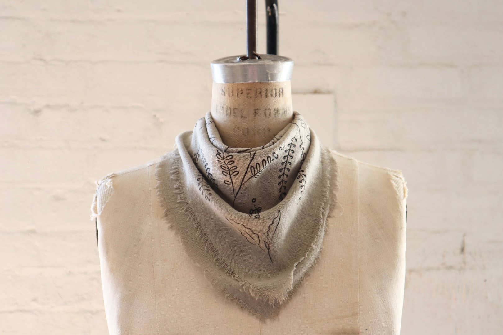 Sage Grey Botanical Print Naturally Dyed Bandana (black)