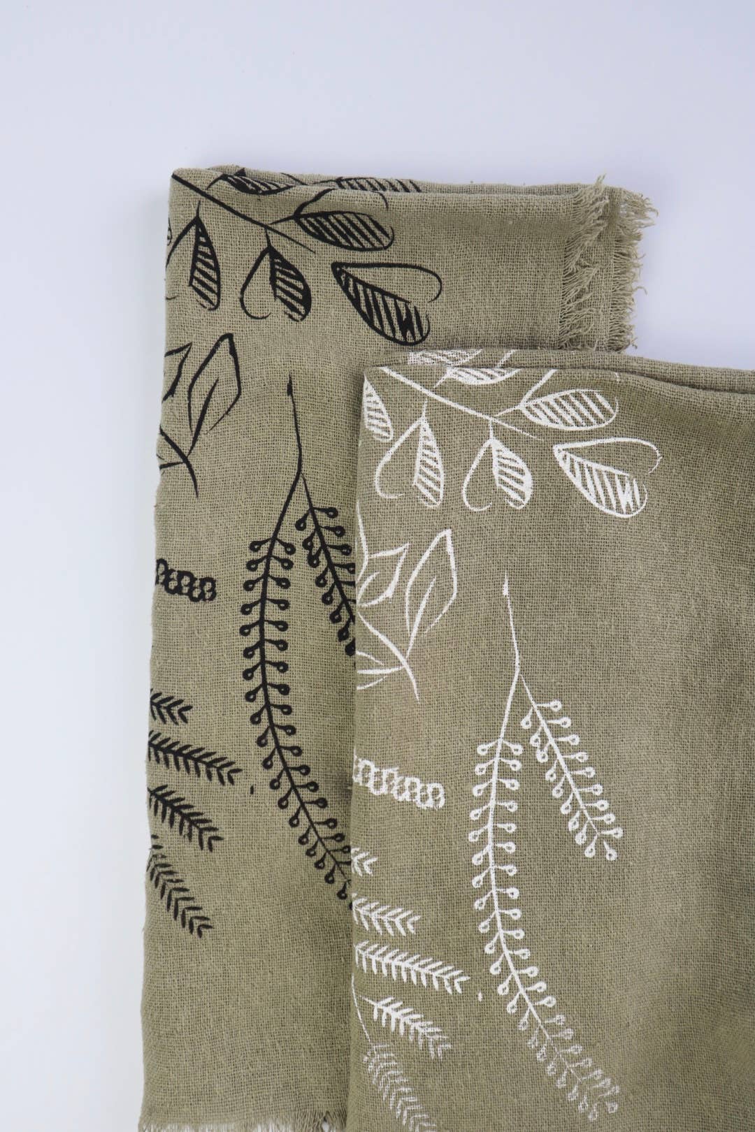 Each item is hand cut, sewn, dyed, and printed in my studio in Cincinnati Ohio. Due to the nature of natural dyed colors due fade over time and are effected by harsh chemicals and soaps. We recommend hand washing and line dry with a natural PH neutral soap. Each batch may vary slightly in color we see this as one of the beauties of natural dyes.