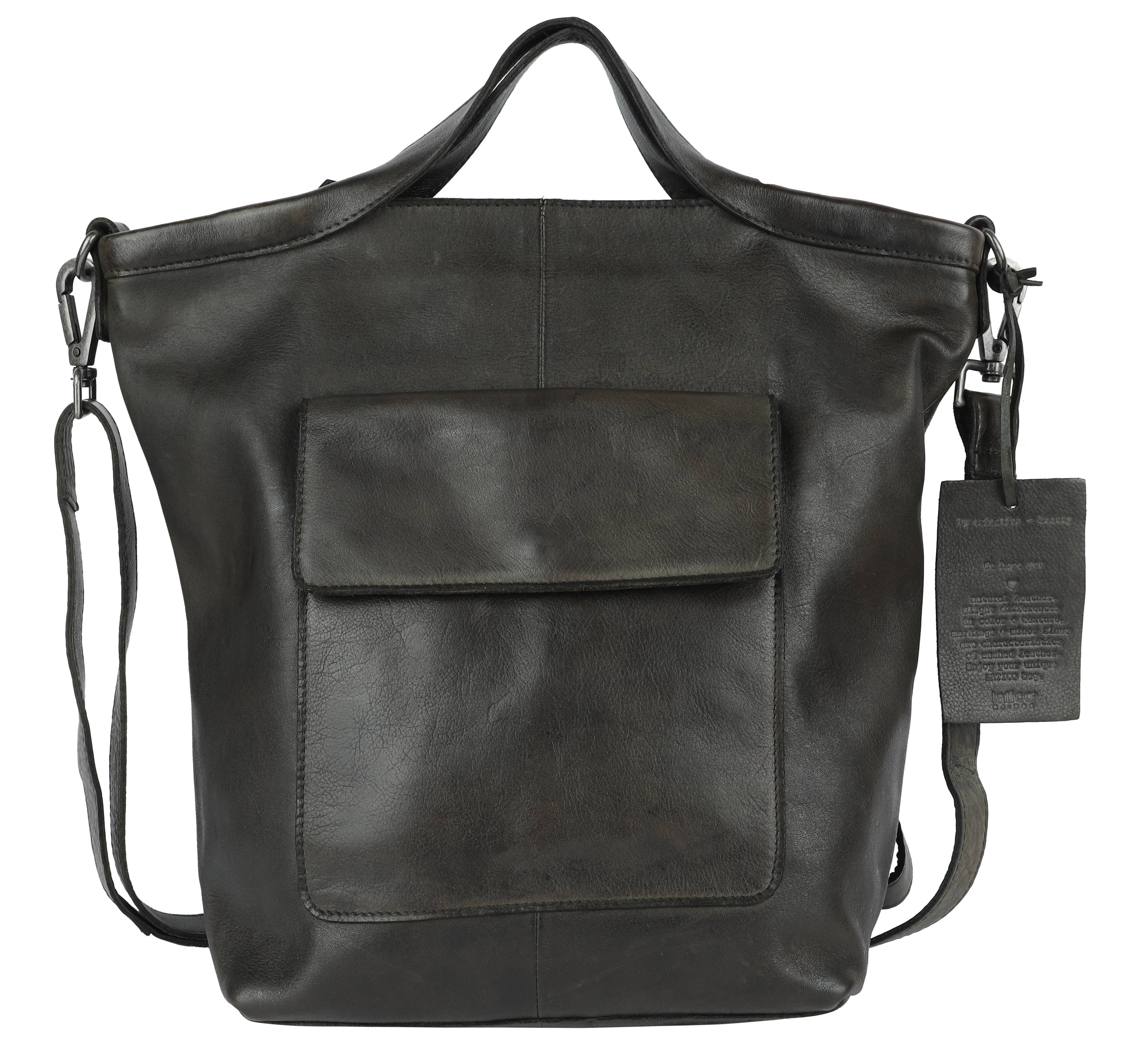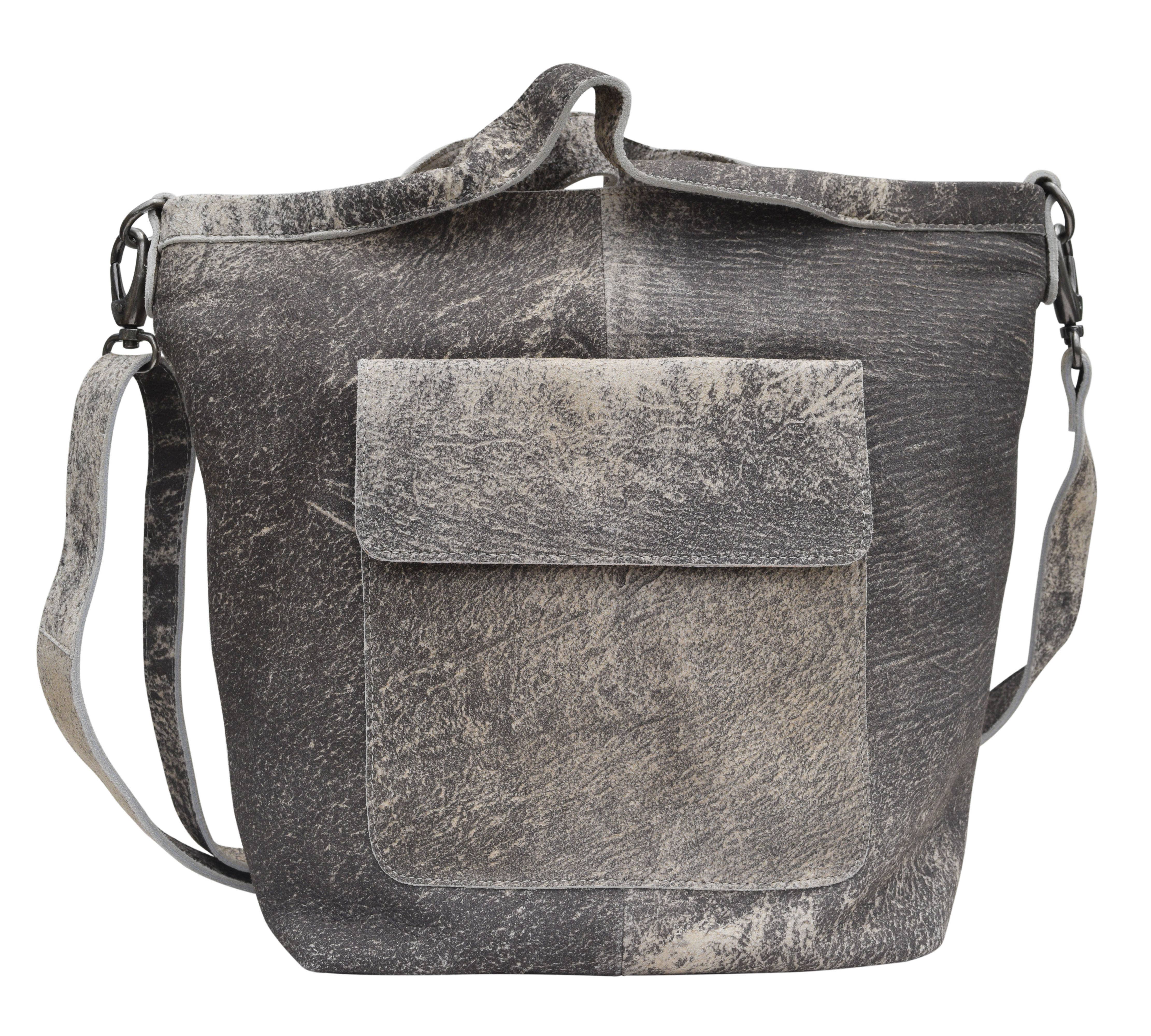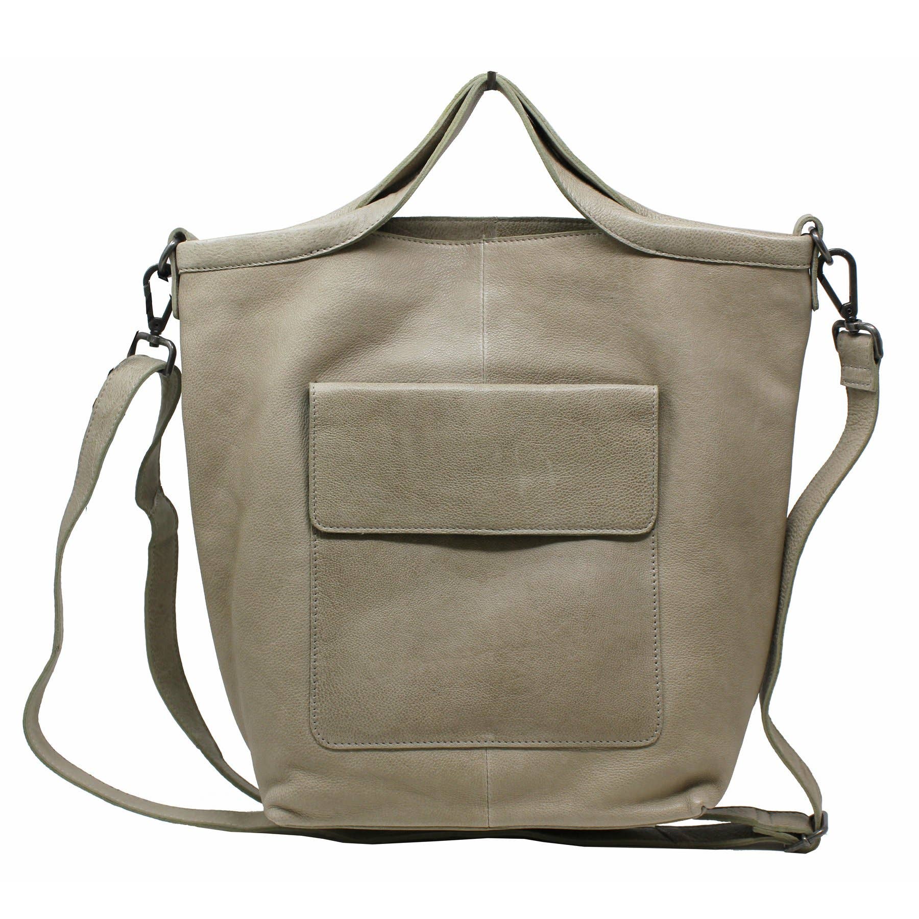 Bianca Tote, 100% Leather, Adjustable 1" wide cross body strap with 29" max and 14 1/2" min drop, Double carry handle 1"wide, Recessed top metal zip entry, Exterior front features flap over open pocket with magnetic snap closure, Principal metal zippered compartment features 2 open pockets, zip pocket, Interior cell phone pocket, and complete organizer, Fully lined (Grey with nylon lining. Oat with cotton lining.),