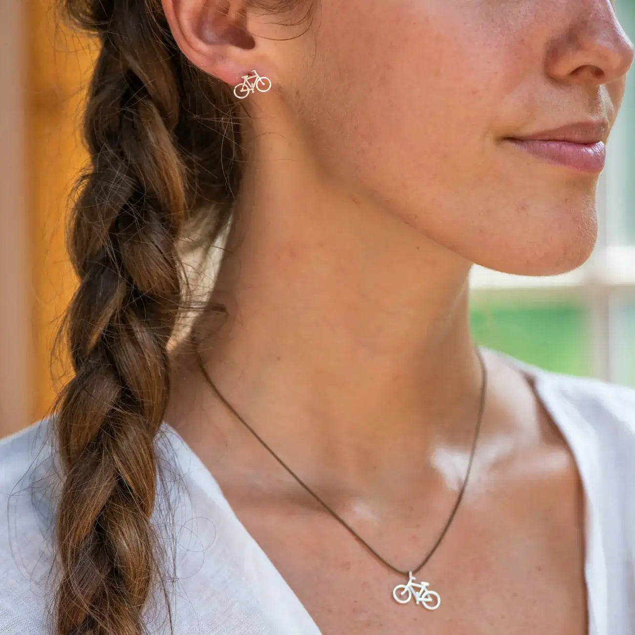 Pedal into style with our Tiny Charm Earrings - Bicycle. These sterling silver, lightweight earrings will add a playful touch perfect for the your adventure-loving spirit. Take these bicycles out for a spin and see how far they take you. Pair them with our Tiny Charm - Bicycle Necklace to complete your look.
