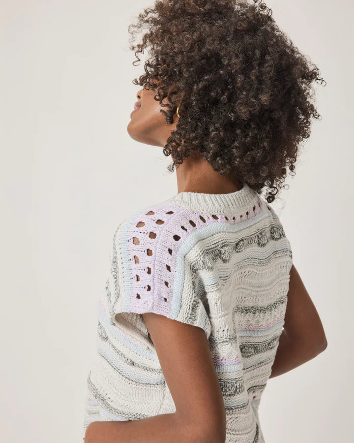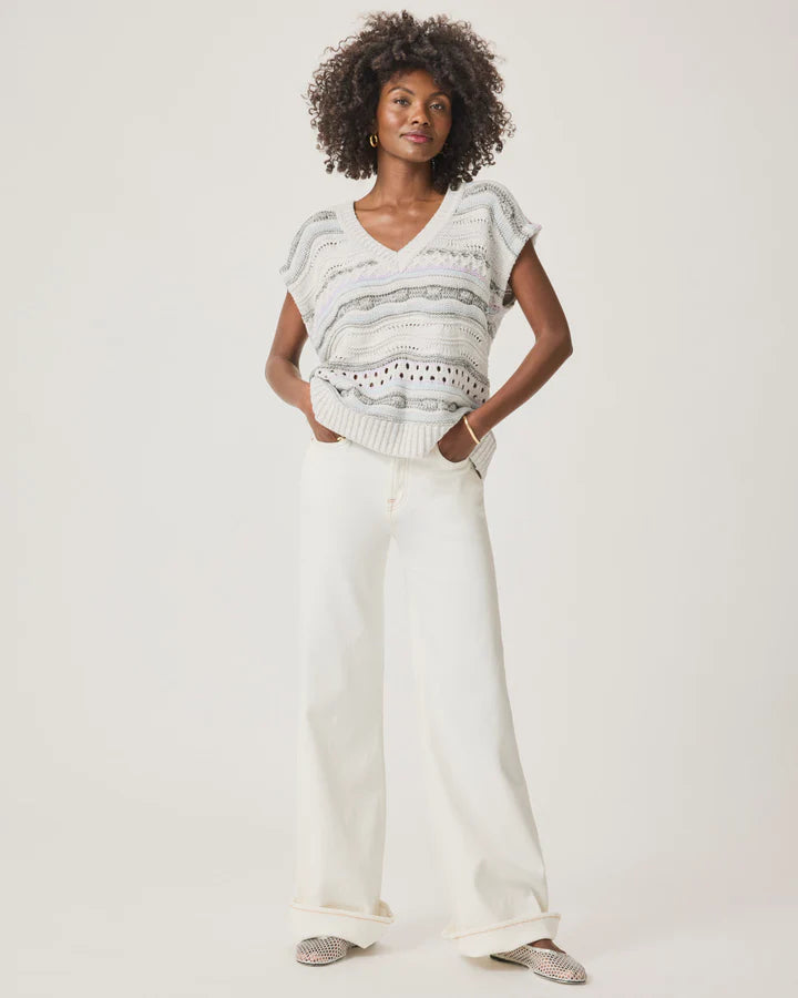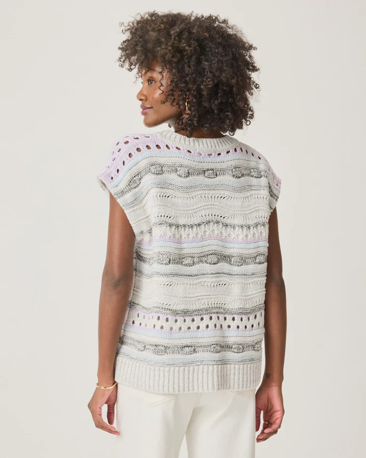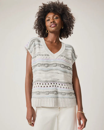 he Brynna Striped Sweater Poncho is made with beautiful open stitching in an array of patterns and textures making it the most unique knit in your closet. This V-neck sweater top is made from a cotton blend in a boxy poncho-like fit, allowing it to drape beautifully over just about anything.
