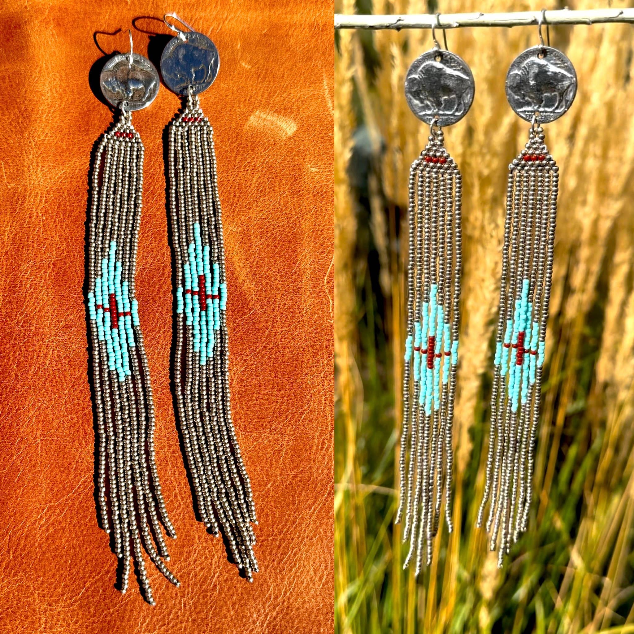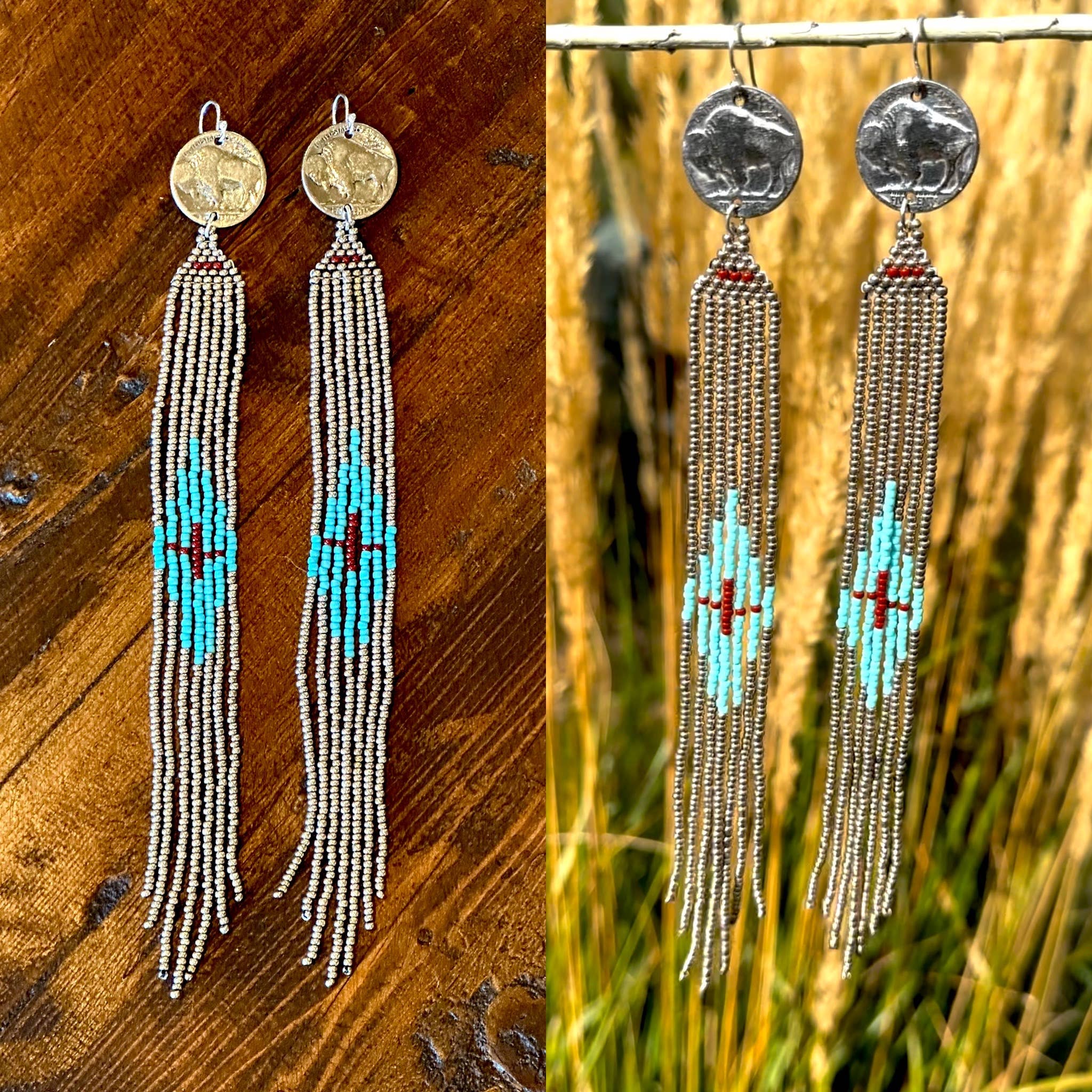 Made with pewter seed beads, these earrings offer a slightly heavier weight, than glass, that allows them to swing gracefully and happily.