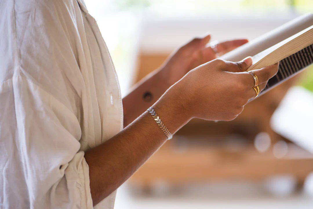 Say Hello to the newest in the Cascade Collection! Our Cascade Bracelet is practical, sophisticated and completely beautiful. Feather-light, so comfortable, with a chevron shape that is modern and timeless. Available in silver with an adjustable extender chain and clasp closure. Looks lovely paired with other bracelets, the Cascade Necklace or stands strong alone as well. We hope you love this newest addition as we do!