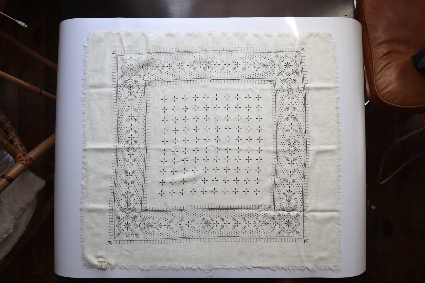 Cream Classic Print Naturally Dyed Bandana (black ink)