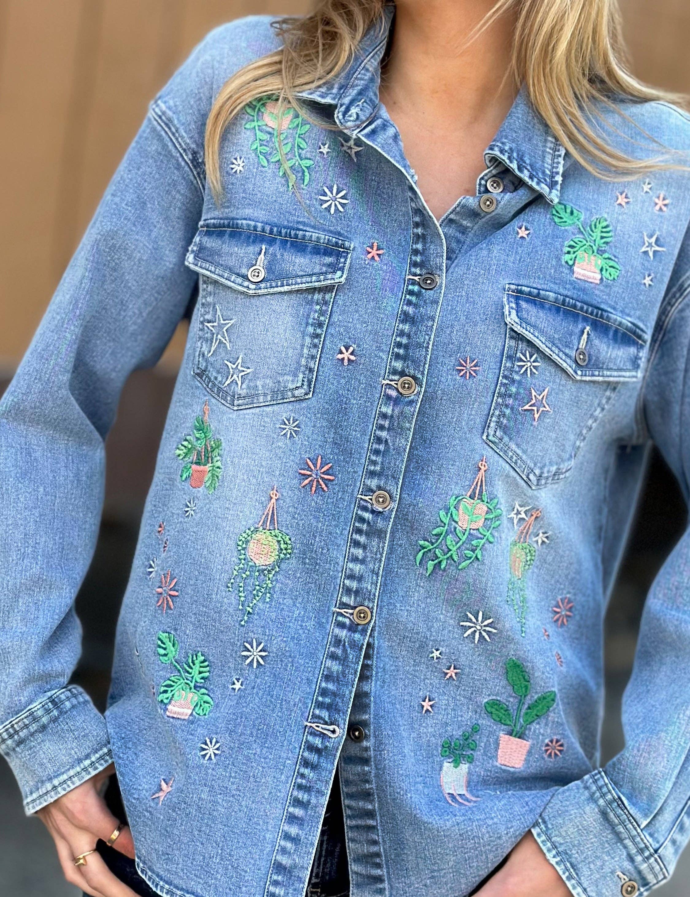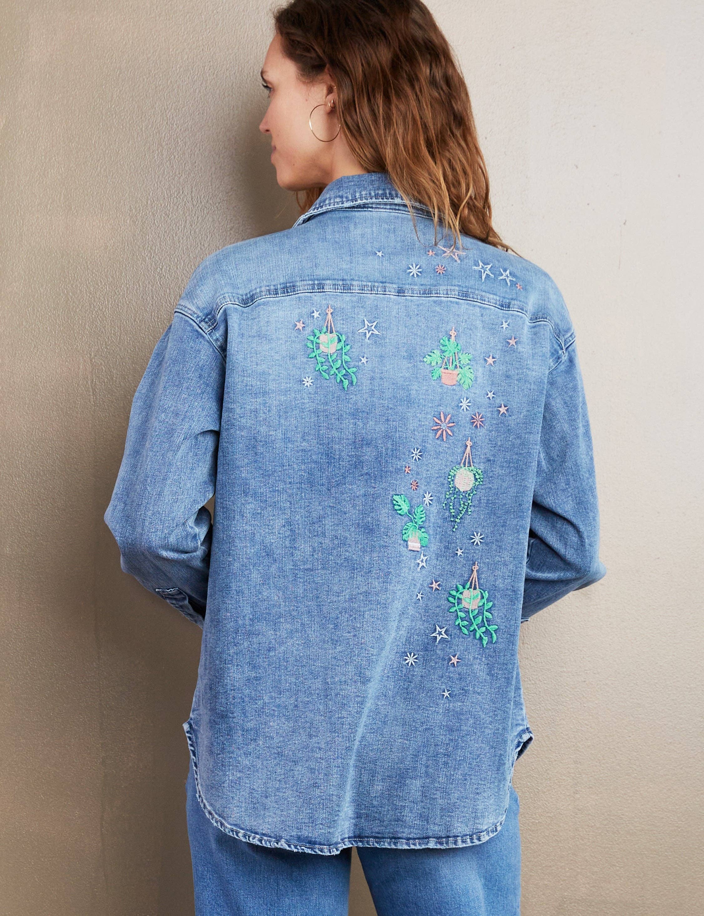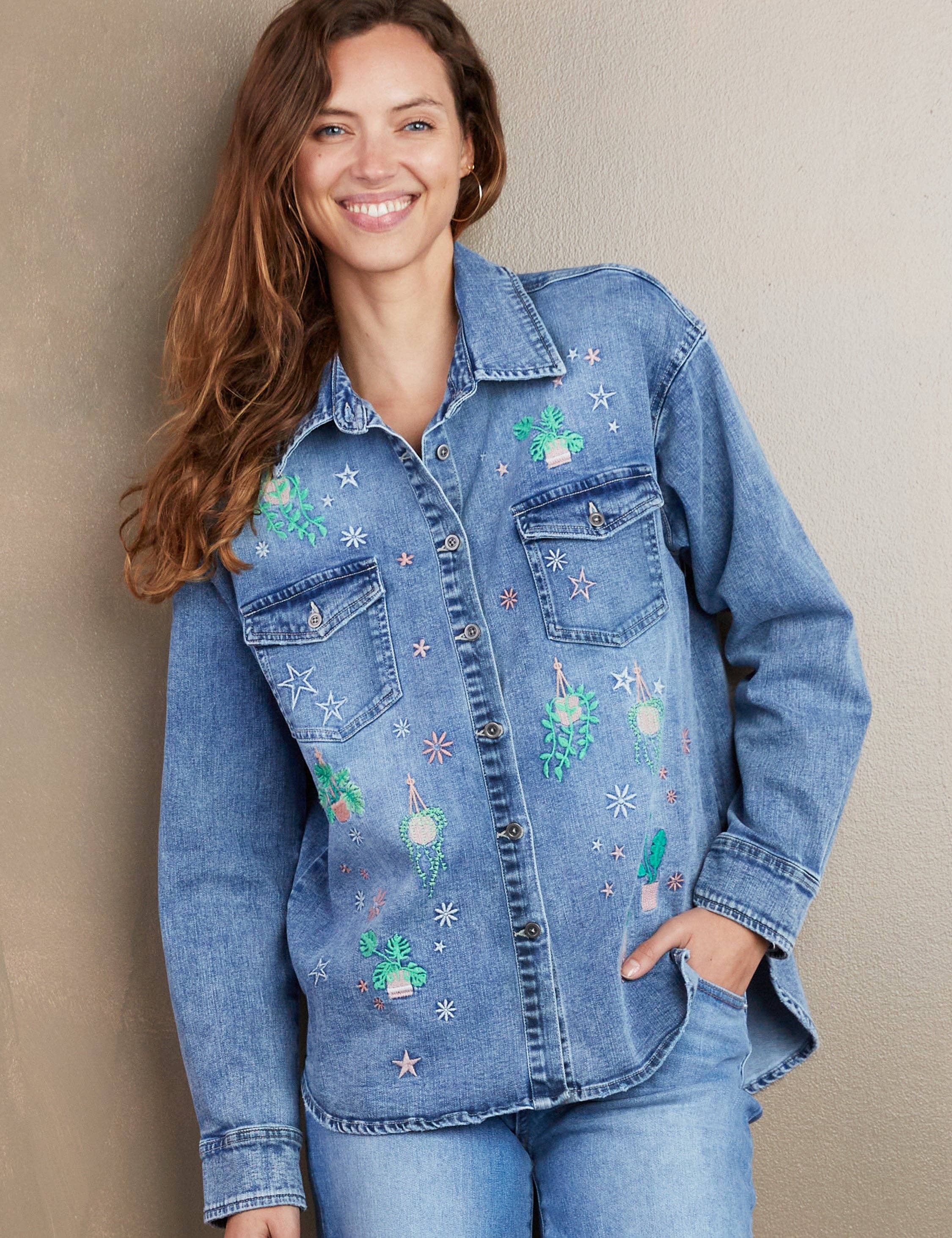 Impossibly soft denim, oversize cut, and a super-cute hanging plant embroidery detail! It's the Denim Hanging Plants Shirt, only from Billy T!