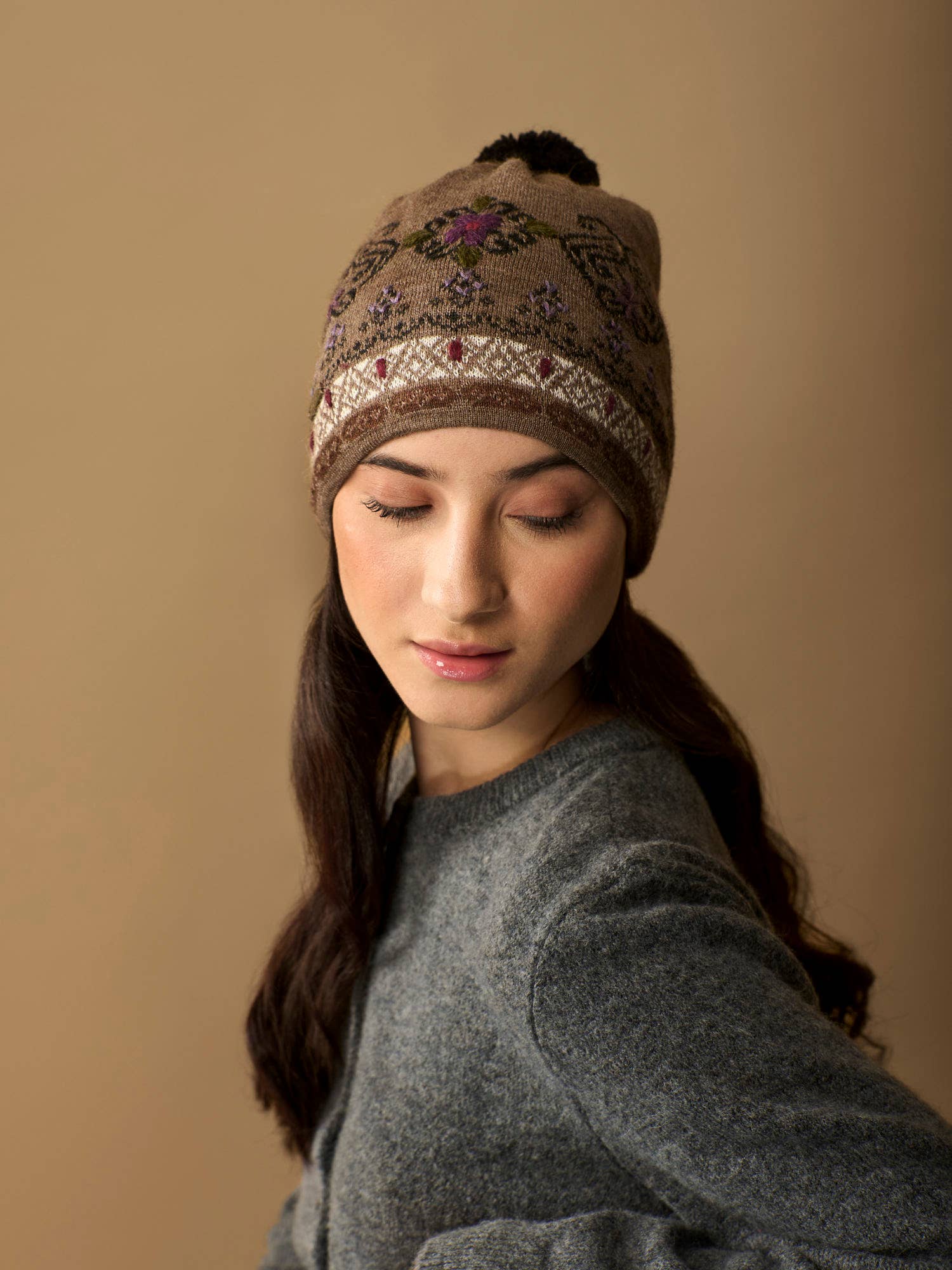 Meet your new favorite winter companion—the Eva Alpaca Hat. This delightful knit hat showcases hand-embroidered florals and a cheerful pom pom that adds personality to any outfit.