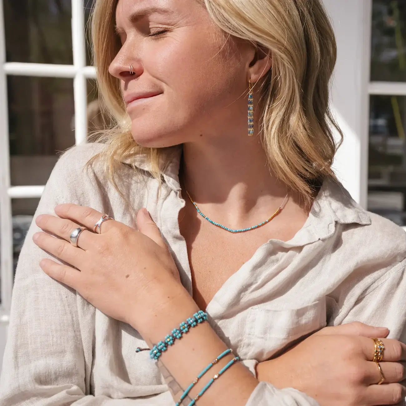 It isn't a mirage on the horizon - it's your new favorite necklace! This elegant piece is inspired by our classic Journey Necklace, but with the focus on everyone's favorite part - the gemstones. These little faceted gems blend effortlessly into tiny gold plated beads giving it it's signature "mirage" effect. This beauty can be worn on a big night out, but is subtle enough for daily outfits. (And trust us, it's not just an illusion!)