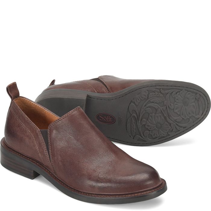- Leather-lined footbed, cushioned at ball and heel, with arch support