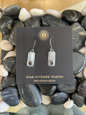 Lovely little 6 mm Smoky Quartz rounds with hammered sterling silver setting.