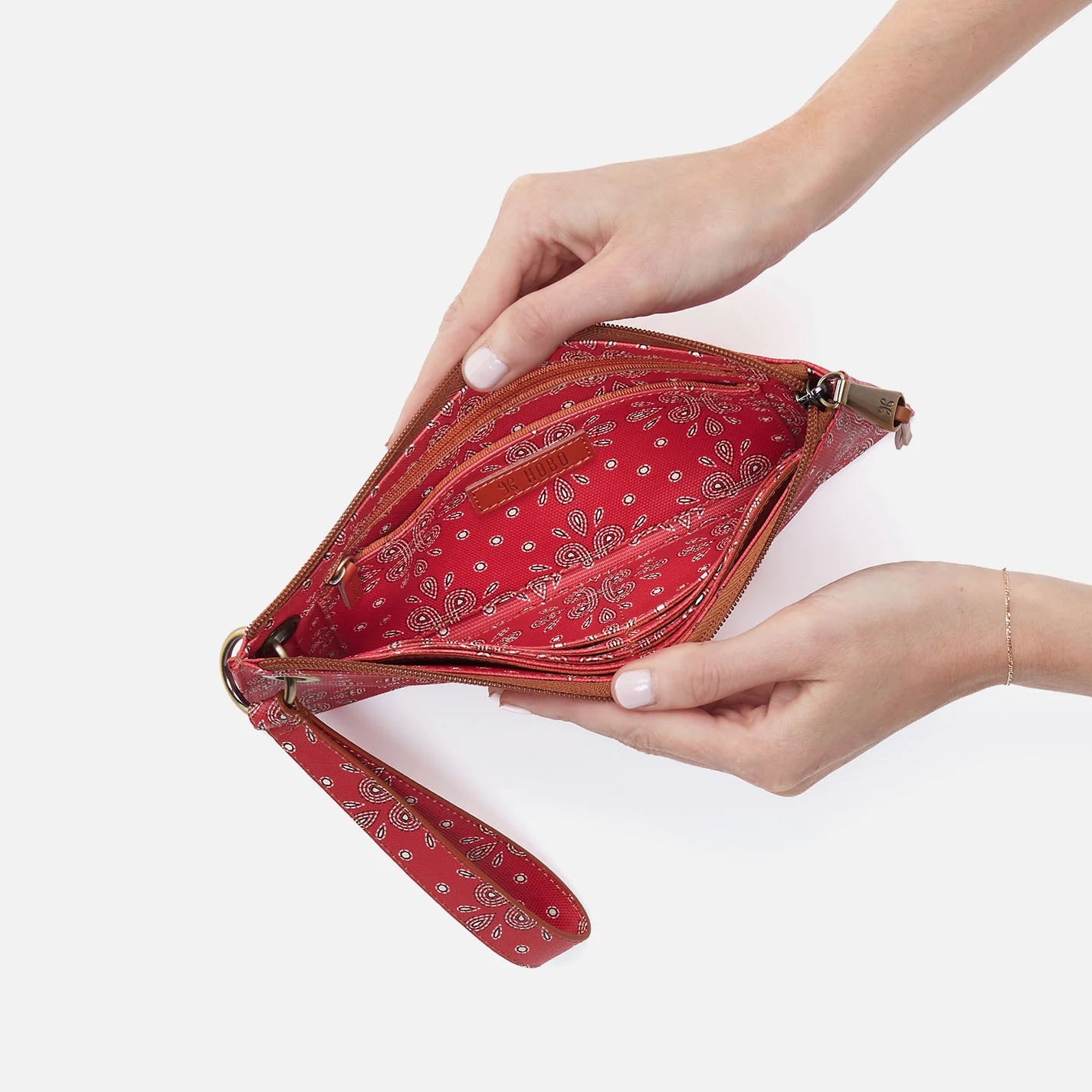 Your favorite wristlet - perfect for grab-and-go moments - now in a boho-inspired floral coated canvas design. Vida can double as a clutch and an organizational pouch inside your HOBO bag, but if you’re ready to be a trailblazer? Slip on the wristlet strap and go!