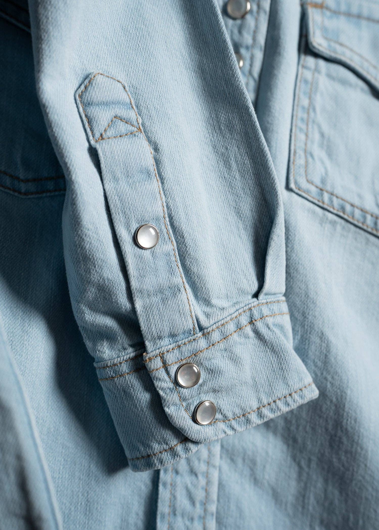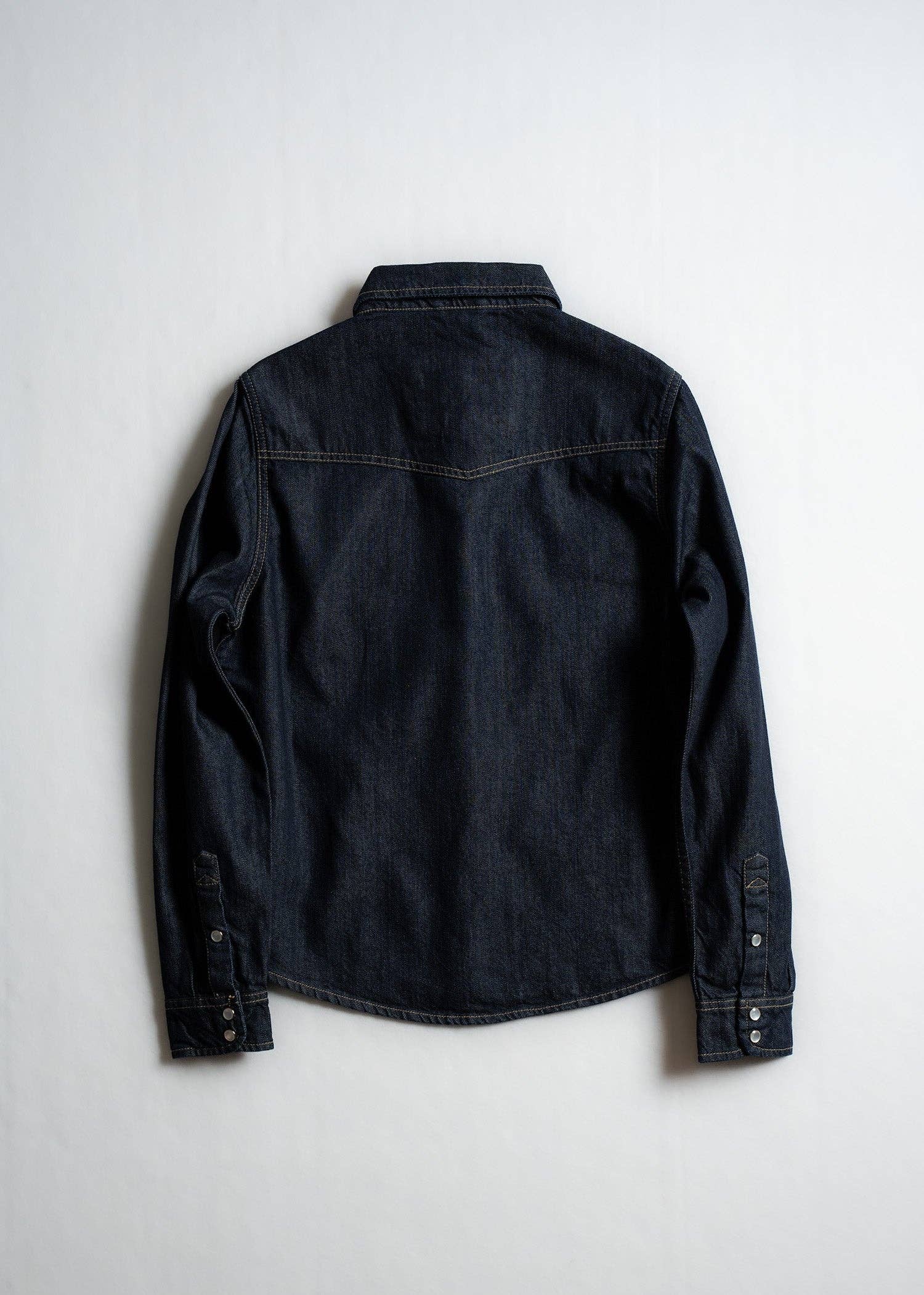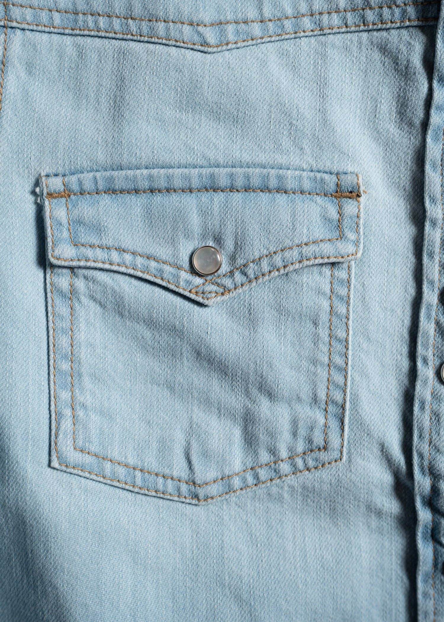 SPECS + DETAILS * 100% cotton denim * Custom pearl-snap button closure * Western front and rear yoke * Model is 5' 8" 135lbs wearing a Medium * Imported