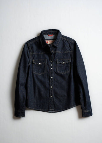 The Women’s West Shirt is a fresh spin on a western classic, made from lightweight denim in your choice of raw indigo or a bleached wash. With custom pearl snap buttons and a western yoke, it’s got just the right mix of vintage vibes and modern ease. Whether you’re layering it up or rocking it solo, this shirt is all about easygoing style with a little edge.