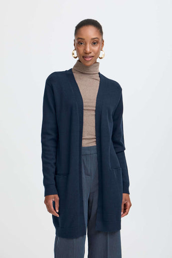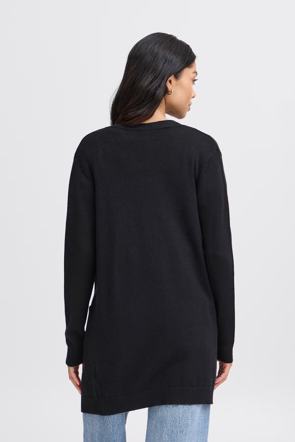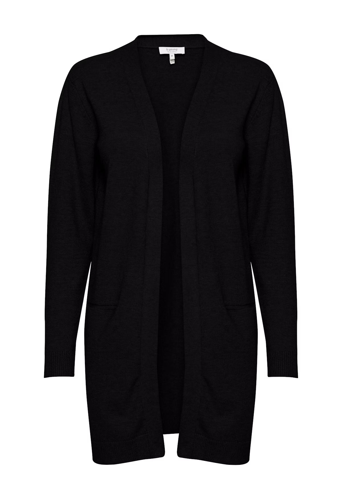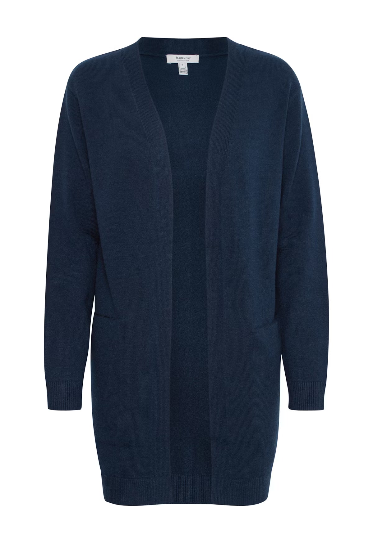 Open front cardigan for women offers a relaxed fit, classic V-neckline, and long sleeves. Features functional pockets and ribbed cuffs for everyday comfort and versatile layering throughout th